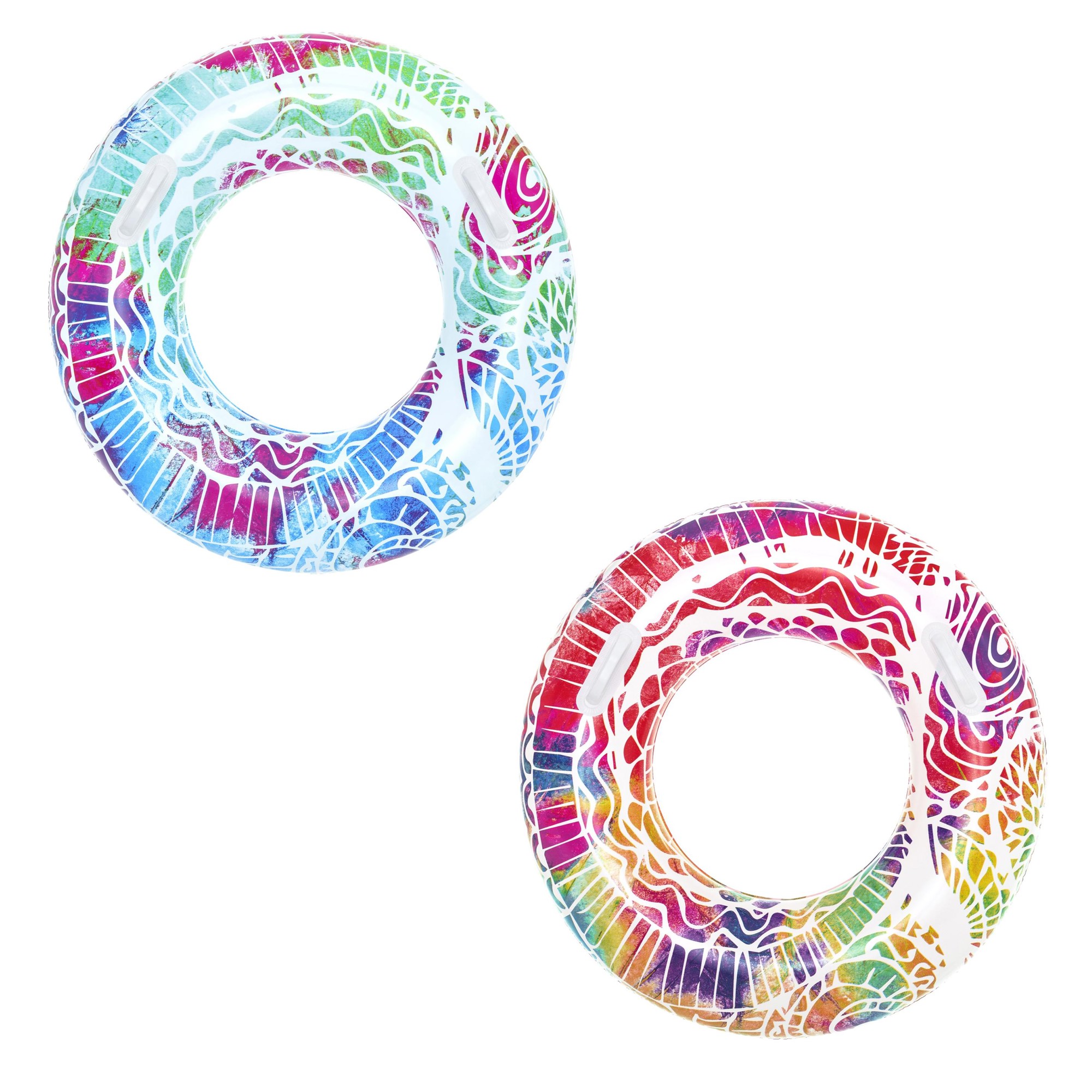 Спасательный круг с современными дизайнами и цветами — это настоящий must have для поездки на водоем!Изготовлено из высококачественного винила, прошедшего испытания на долговечность и прочность. Устойчиво к ультрафиолетовому излучению и морской соли. Круг оснащен двумя боковыми ручками, которые обеспечивают стабильность при использовании изделия и помогают при его перемещении Накачивание и спуск воздуха просты как дважды два, для этих действий не требуется никаких дополнительных инструментов. Вы можете взять изделие с собой в любую точку мира, поскольку после спускания воздуха оно не займет много места в сумке.