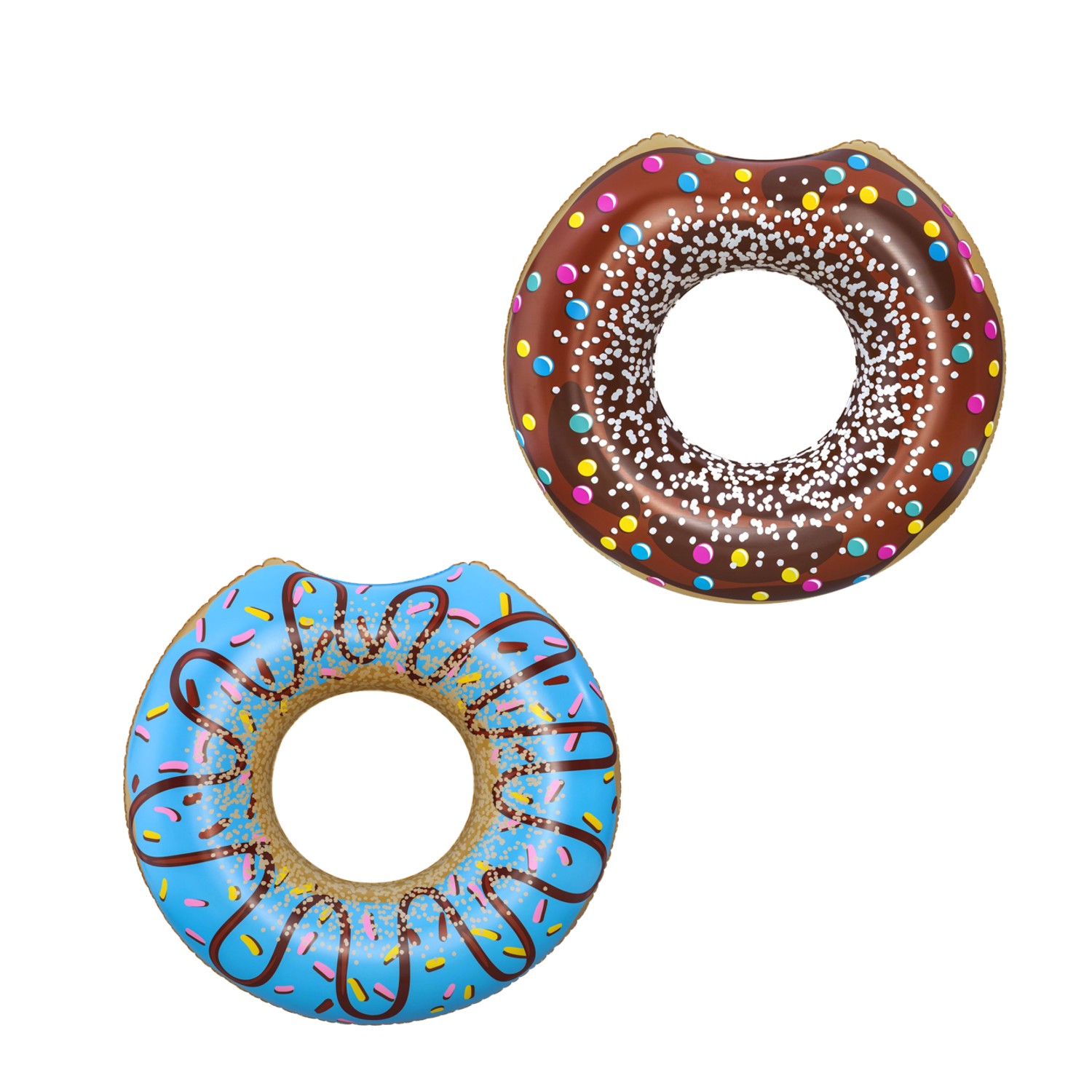 Большой надувной круг для воды в форме красочного пончика отлично подойдет для поездки в отпуск или в бассейн.