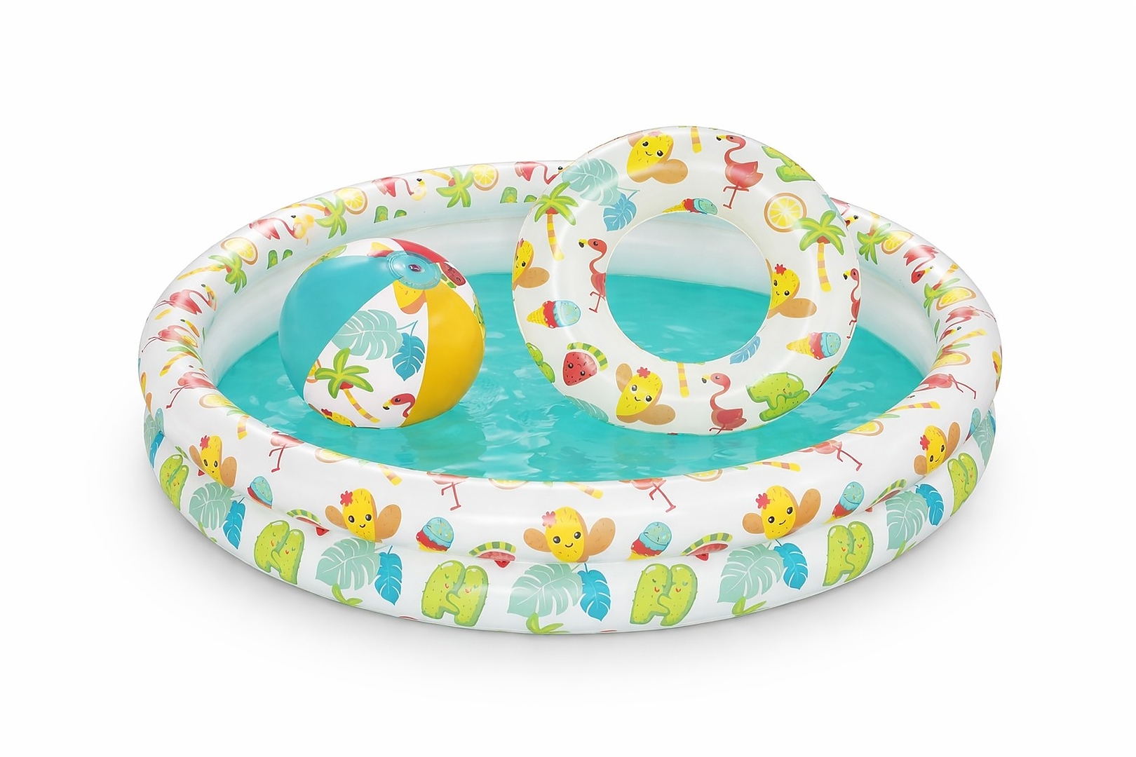 Подарите своему ребенку радостные летние моменты, наполненные смехом и водными забавами! 💦 Bestway® Beachtastic™ Play Pool Set — это очаровательный, красочный набор для бассейна, который превратит любой сад, террасу или место отдыха в настоящую зону релакса и развлечений. Тропический дизайн привлекает внимание, а прилагаемые аксессуары сделают так, что дети не захотят выходить из воды 🌈.