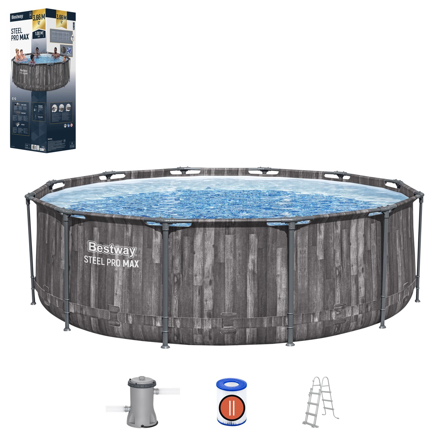 🏊 Bestway Steel Pro MAX™ 12’ x 39,5” (3,66 x 1,00 м) – Круглый каркасный бассейн с насосом 🏊