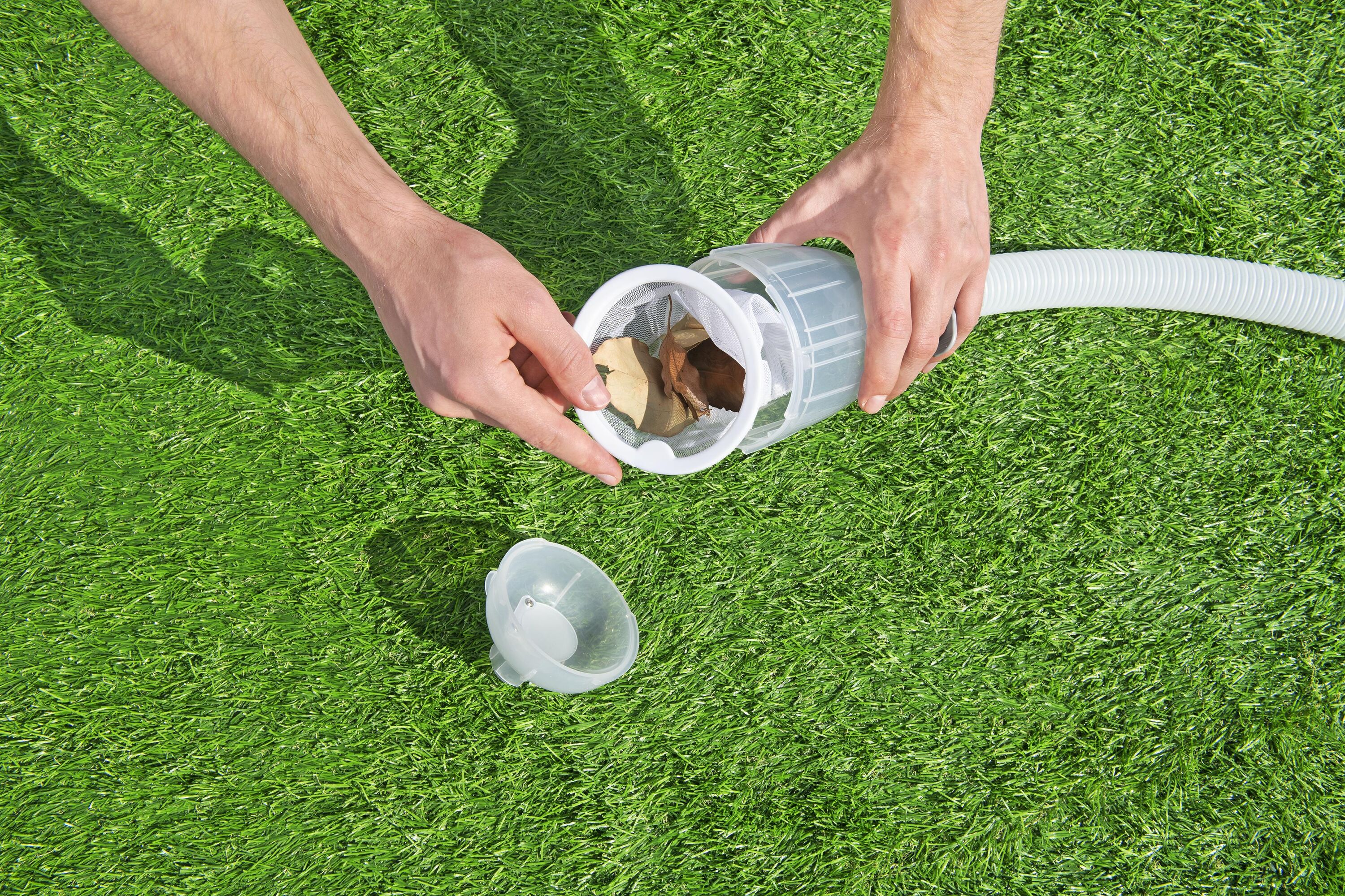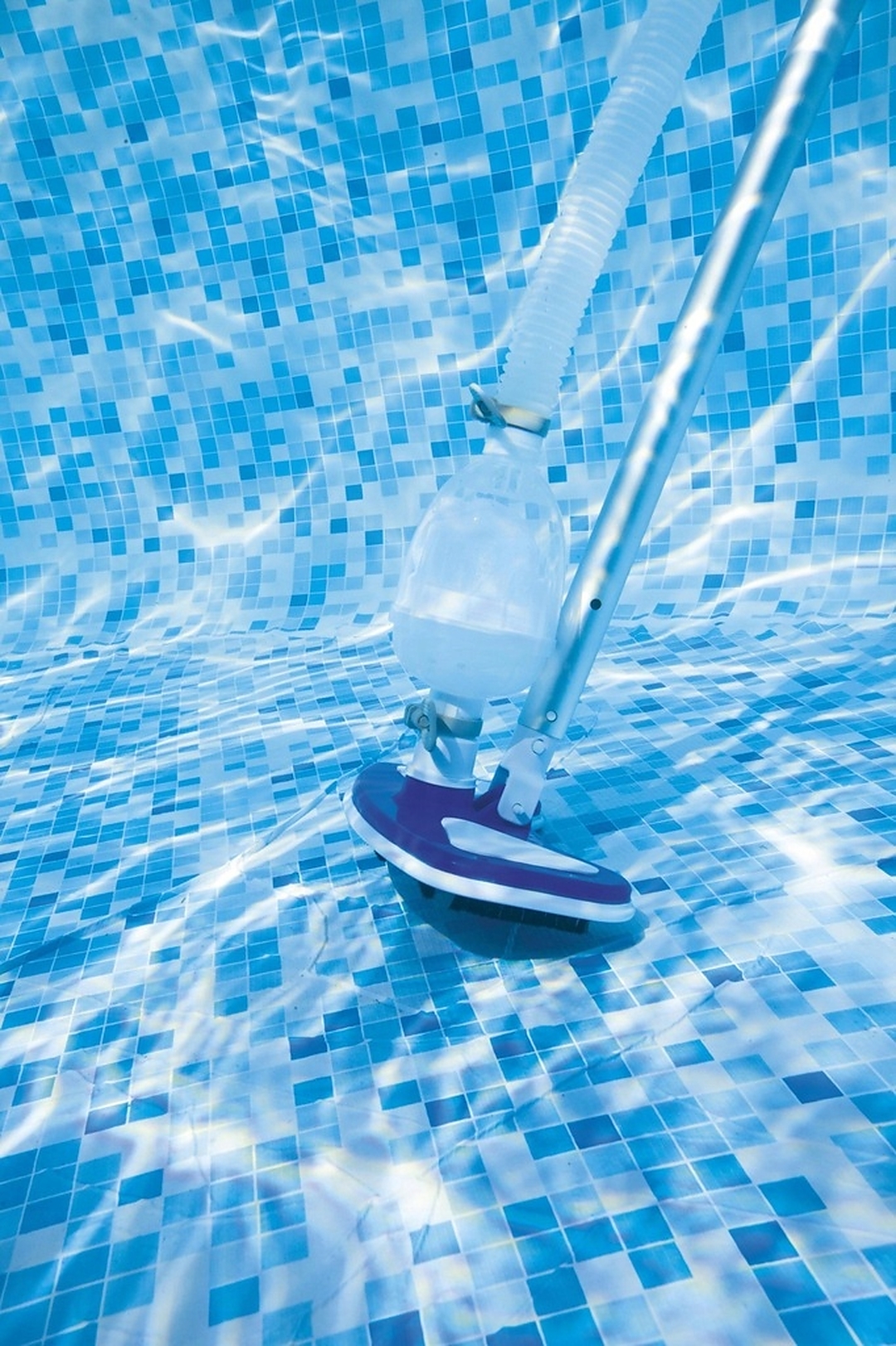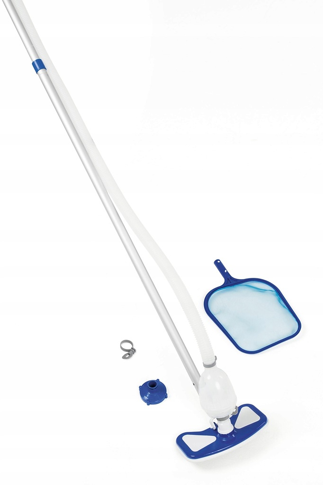 Пылесос оснащен насадками, подходящими для различных фильтрующих насосов, и служит для удаления водорослей и грязи с дна и стенок бассейна. Как фильтрующую сетку, так и пылесос можно прикрепить к регулируемой алюминиевой ручке и садовому шлангу, который идеально подходит для бассейнов большего диаметра.