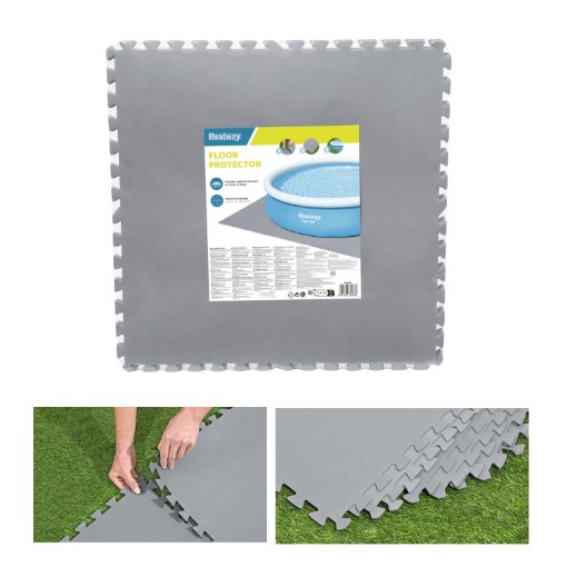 В комплект входит 9 штук соединяемых напольных защитных матов, предназначенных для защиты бассейнов и спа.