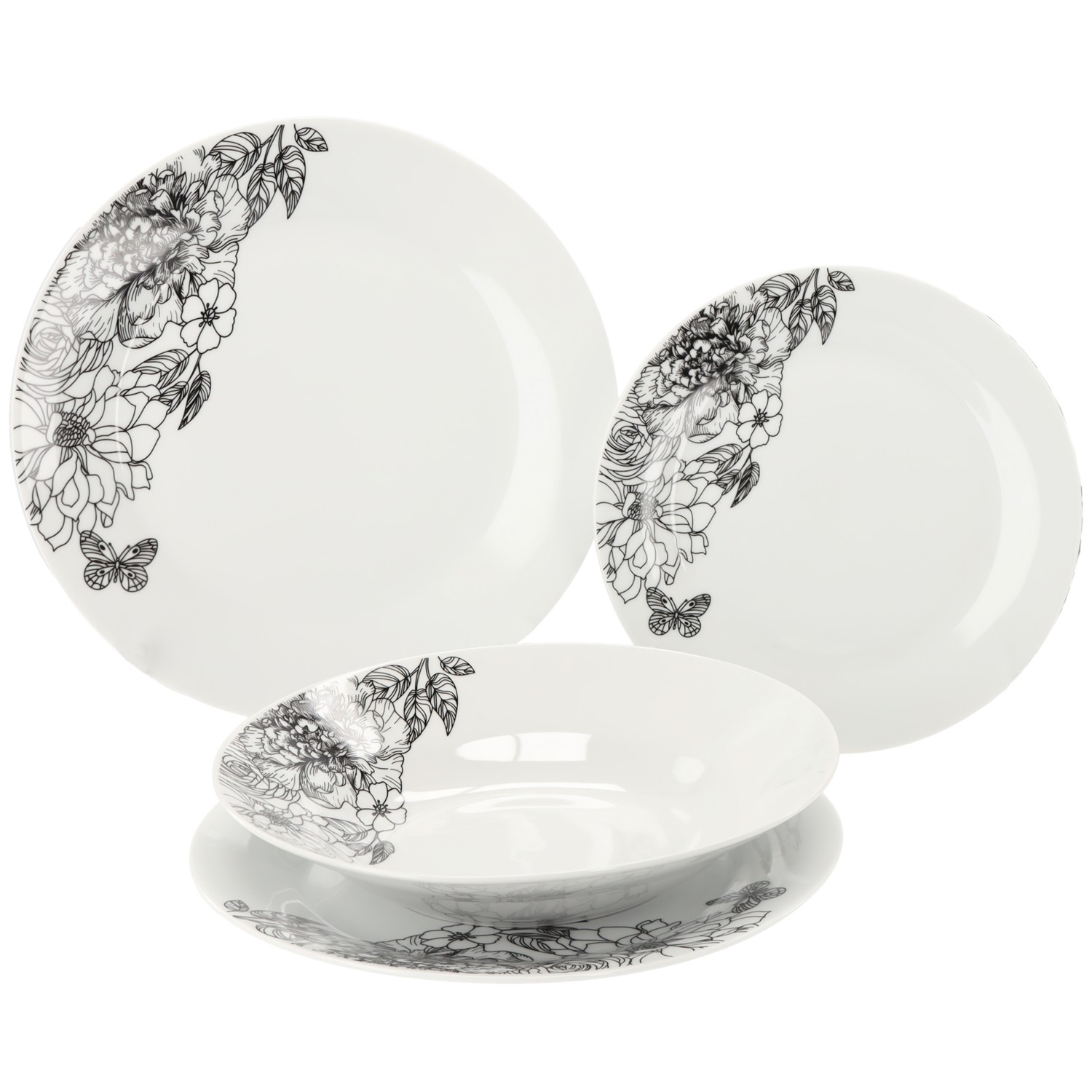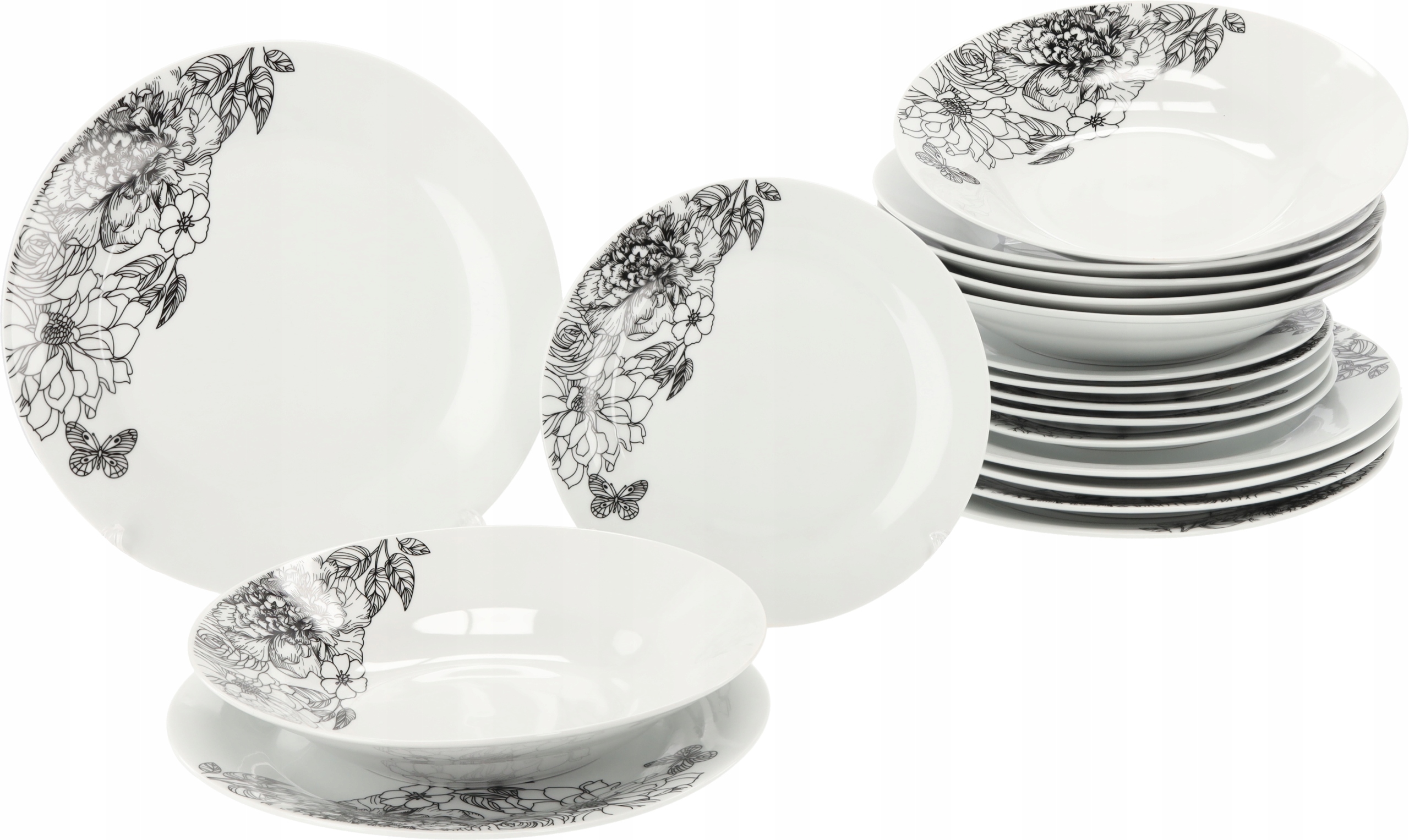 Круглый фарфоровый обеденный сервиз из 18 элементов представляет собой классическую и стильную посуду, которая идеально подойдет как для повседневного использования, так и для особых случаев. Он состоит из трех видов тарелок элегантной круглой формы, которые обеспечивают функциональность и эстетику подачи блюд.