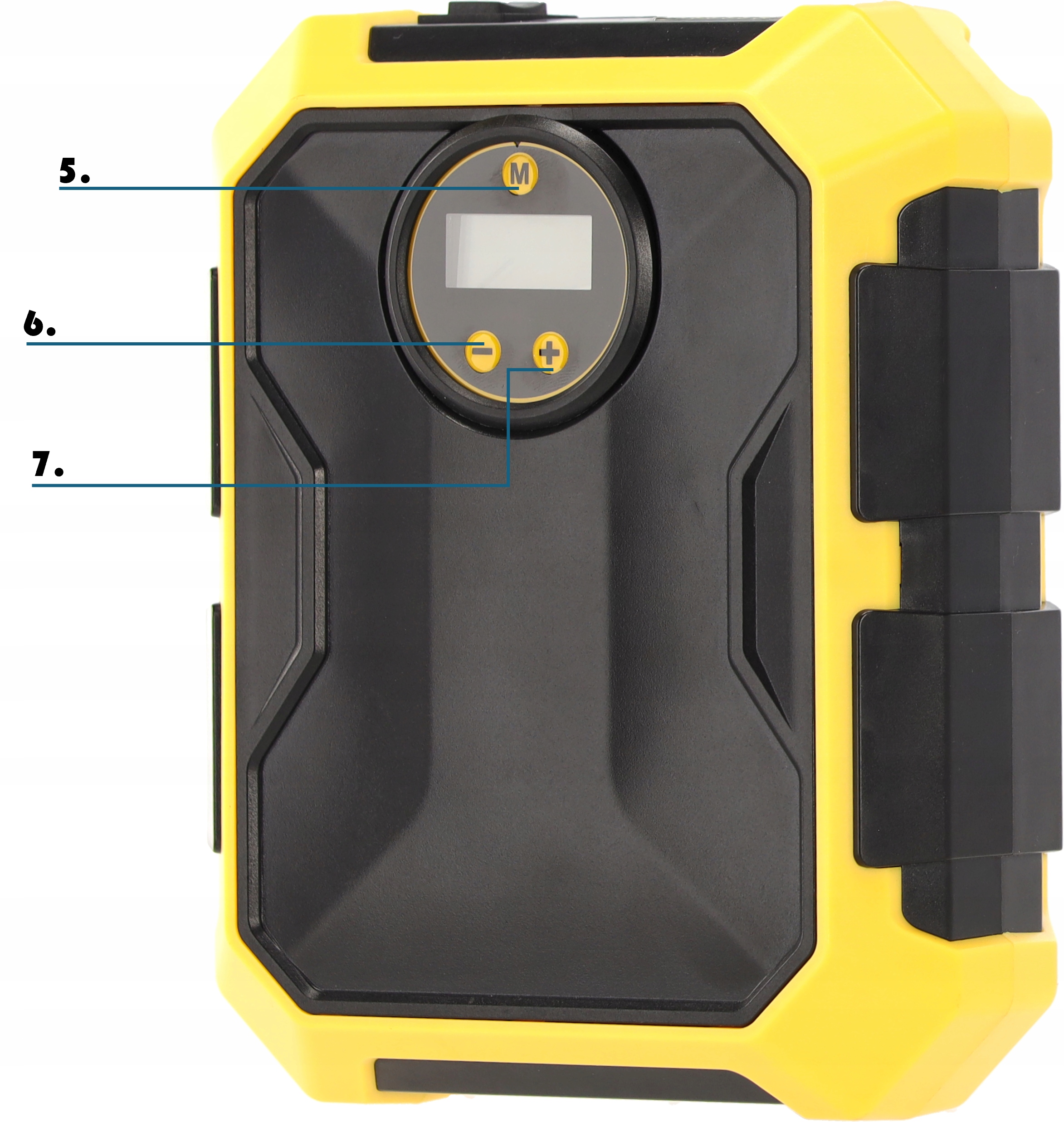 Оснащен цифровым экраном, который позволяет точно установить целевое давление. После его достижения компрессор автоматически отключается, что предотвращает перекачку шин.