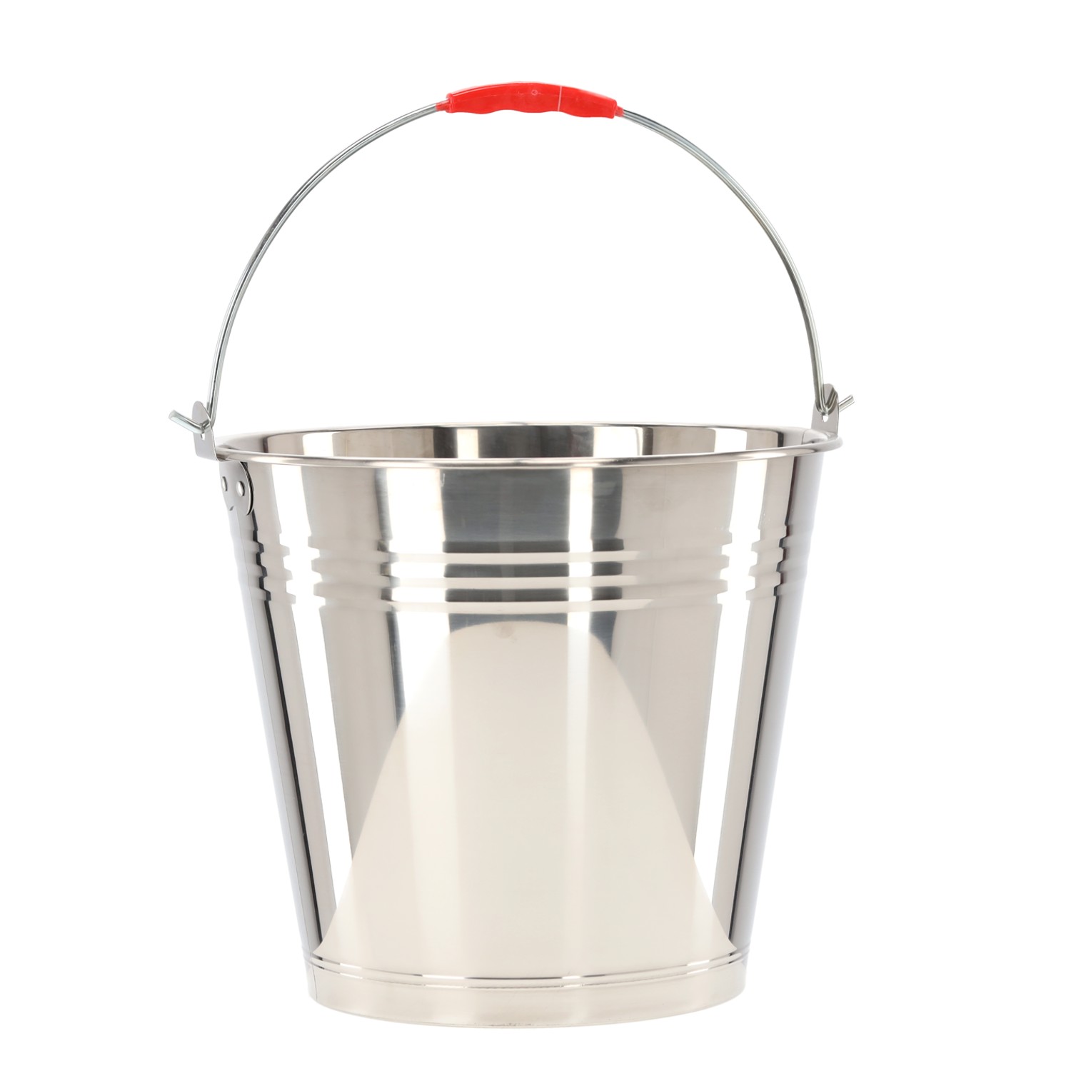 Нержавеющее ведро объемом 14 литров, идеально подходит как для домашнего, так и для садового использования, особенно в качестве элемента комплекта для полива. Легко моется и удобно в использовании.
