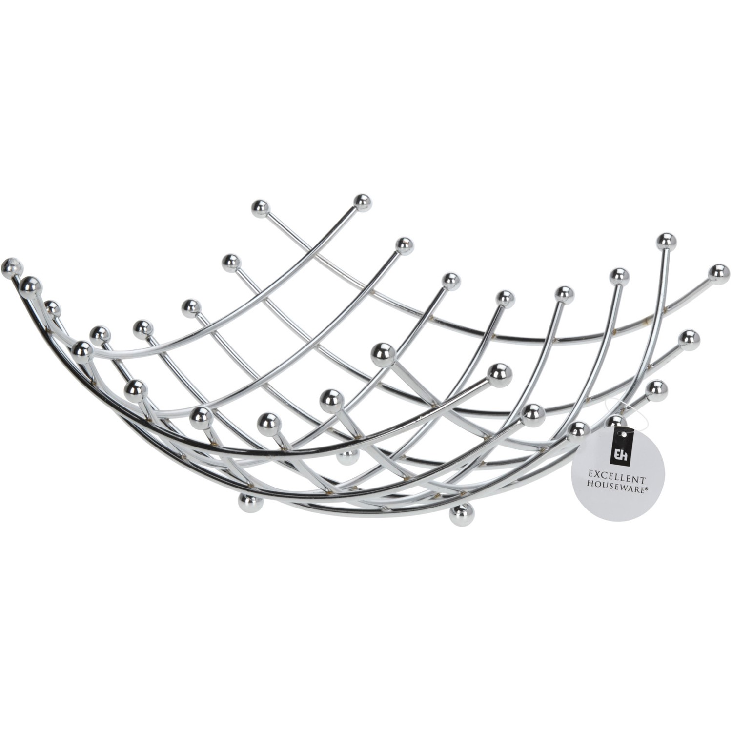 Хромированная корзина для фруктов, сочетающая в себе современный дизайн и функциональность. Идеально подходит для хранения и демонстрации свежих фруктов на кухне или на столе.
