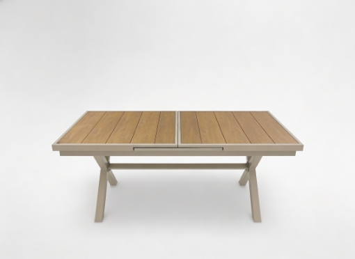 Представляем стильный и практичный садовый стол, который сочетает в себе современный дизайн, высокую устойчивость к погодным условиям и удобство использования. Алюминиевая конструкция в элегантном бежевом цвете и столешница из материала, имитирующего дерево, делают стол идеальным для террасы, сада и коммерческих помещений.