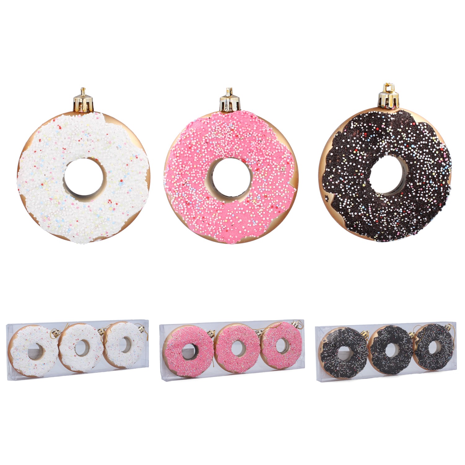 Набор из 3 елочных украшений в форме пончика диаметром 8 см. Они являются интересной альтернативой классическим елочным шарам. Тщательно изготовленные, они создают волшебство Рождества. Являются универсальным украшением, которое подходит к любому стилю.