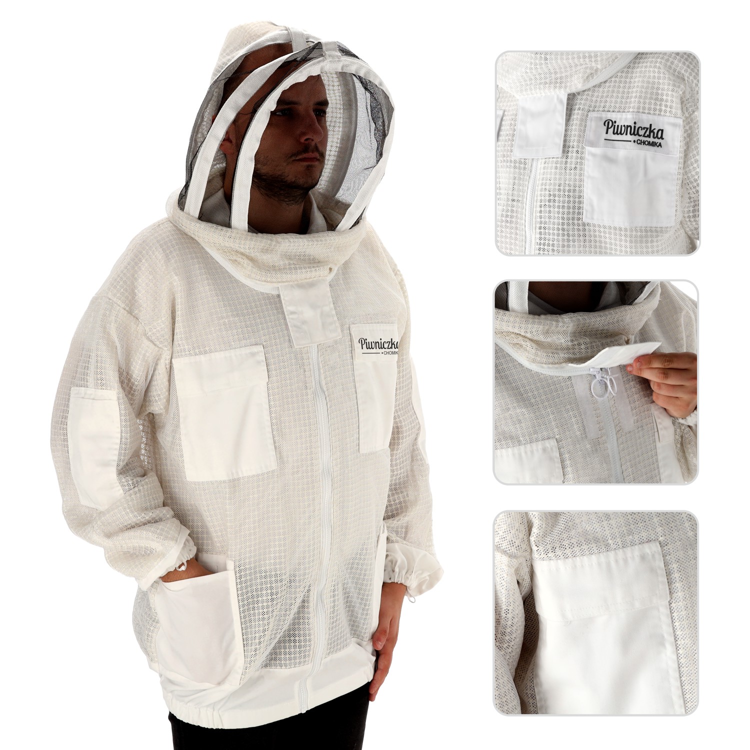 Вентилируемая куртка для пчеловодов на молнии, со съемной шапкой, является отличным выбором для пчеловодов, работающих в жаркие дни. Благодаря 3-слойному вентилируемому материалу, пользователь чувствует себя комфортно и безопасно во время работы на пасеке. Куртка застегивается на молнию, а шапка легко снимается. Кроме того, куртка имеет манжеты на рукавах и талии, что обеспечивает лучшую посадку и защиту. Шесть функциональных карманов позволяют хранить необходимые инструменты во время работы.