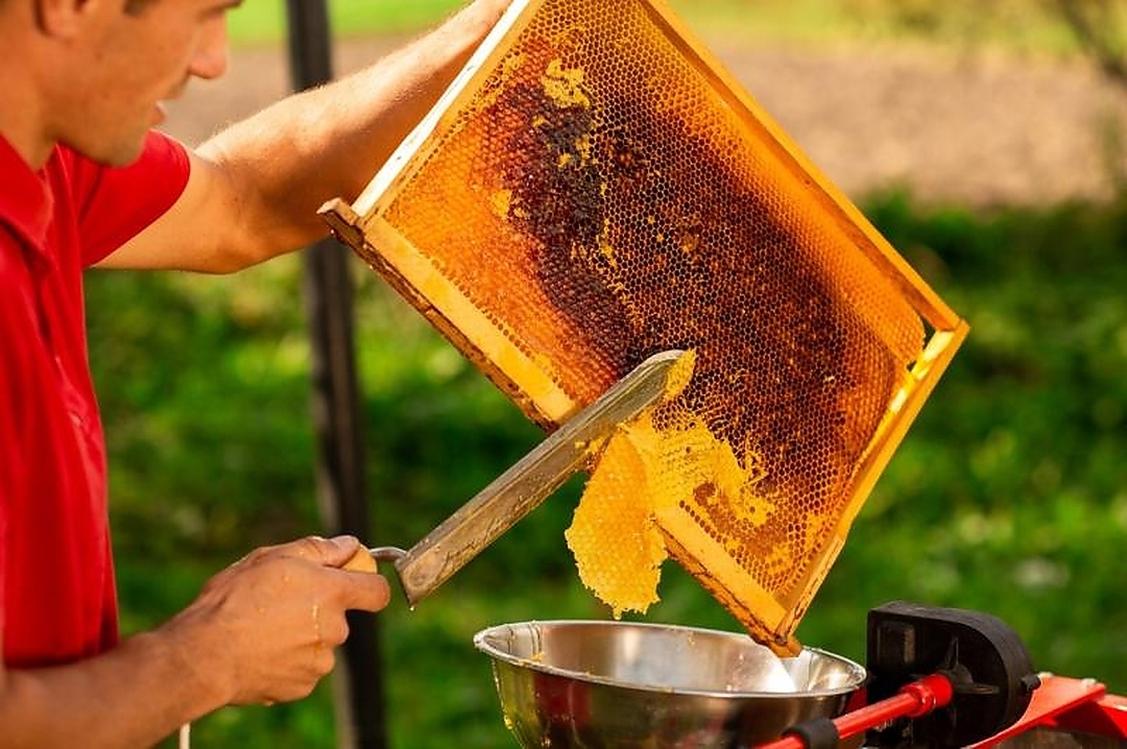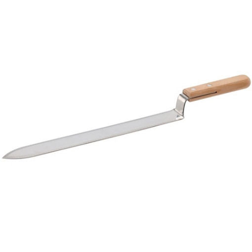 Нож для снятия крышек является идеальным инструментом для работы в пасеке. Традиционный инструмент для снятия крышек с рамок с медом. Специально профилированный и заточенный с обеих сторон. Оснащен деревянной ручкой. Благодаря правильно профилированному лезвию позволяет аккуратно снять крышку даже с самой неровной рамки.