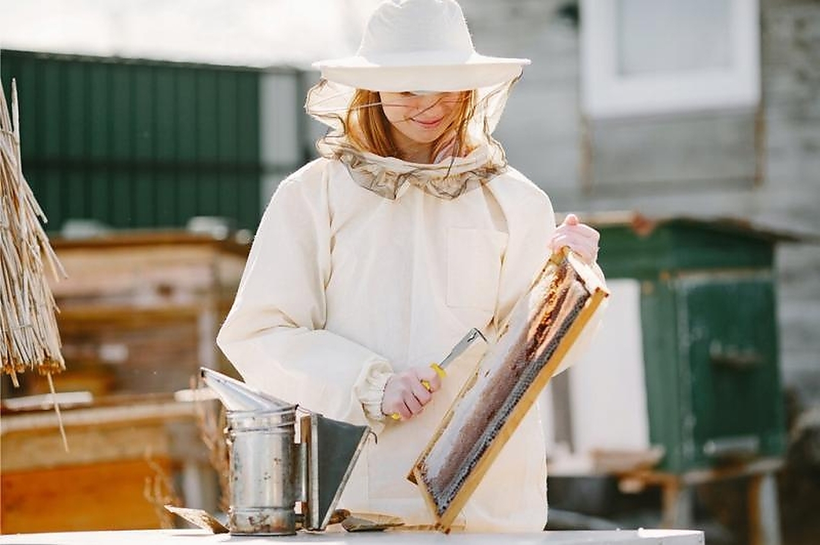 Металлический плоский стержень, загнутый с одной стороны и заостренный с обеих сторон, служит для раздвигания рамок, поддевания и соскабливания загрязнений, пчелиного клеевого составов или воска. Инструмент имеет удобную пластиковую ручку, благодаря чему его использование очень удобно.