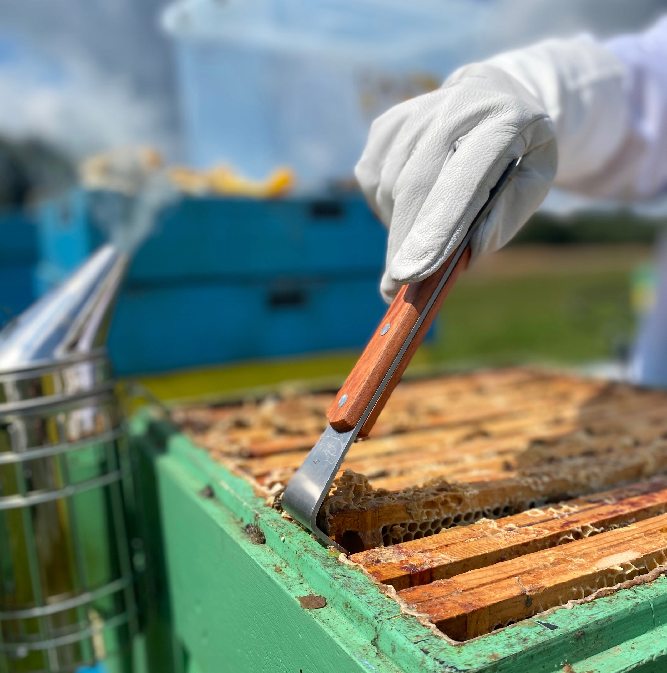 Удобное нержавеющее долото в деревянной оправе, оснащенное специально профилированным крючком, особенно полезным при извлечении рамок. Удобный инструмент идеально подойдет для вашей пасеки. Размеры инструмента и соответствующим образом профилированные края позволяют удобно использовать долото при работе с пчелами.