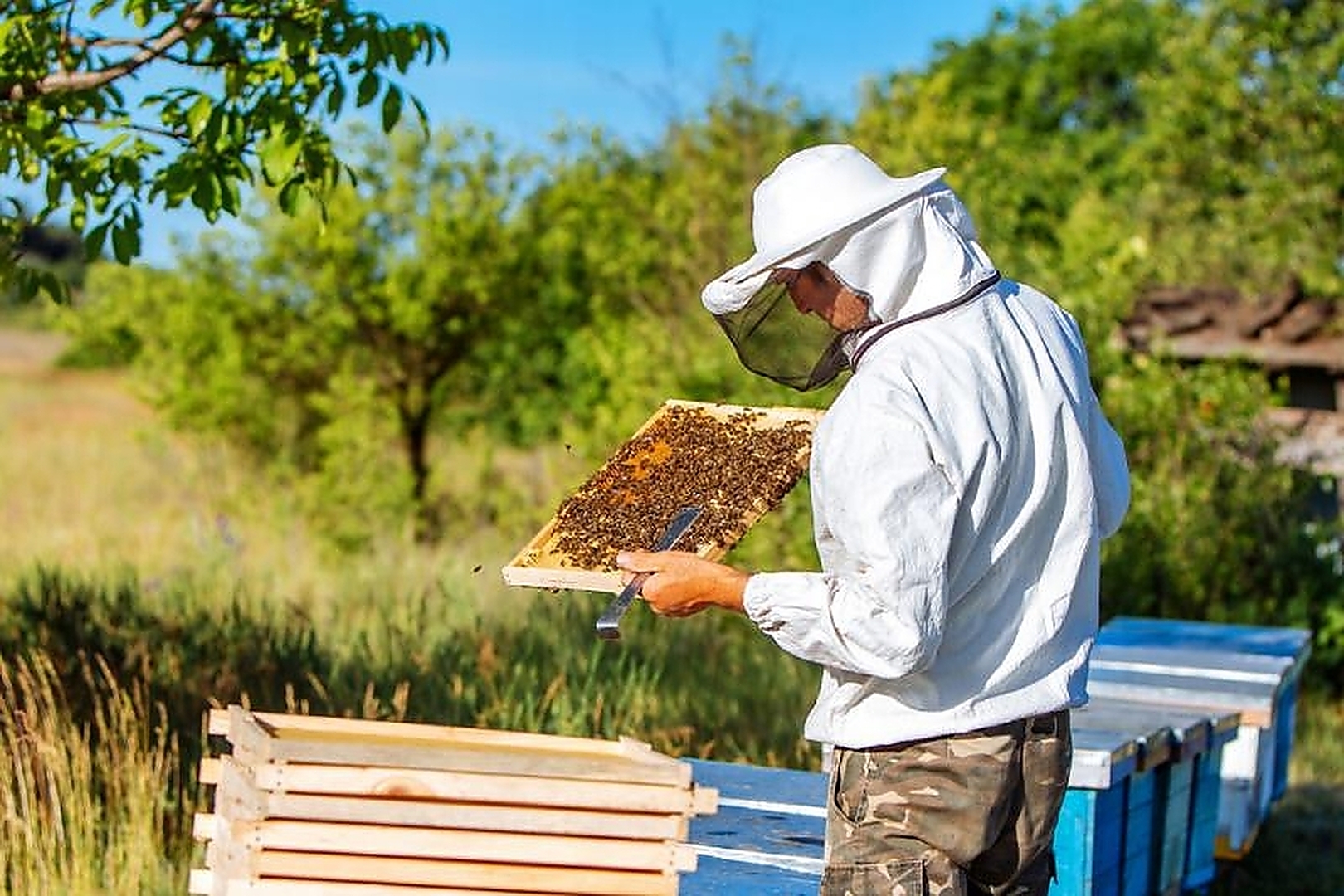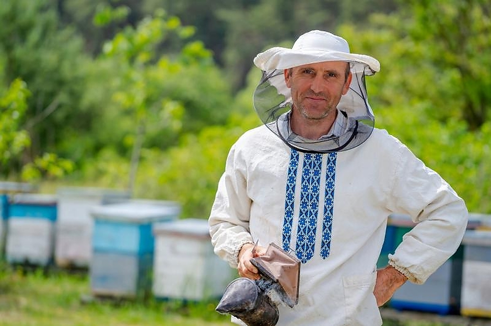 Пчеловодческая шляпа с москитной сеткой оснащена дополнительным ободом, который удерживает сетку на нужном расстоянии от лица. Дополнительной защитой от прямого контакта с пчелами является шнурок со стопором, благодаря которому пчелы не могут попасть внутрь шляпы.