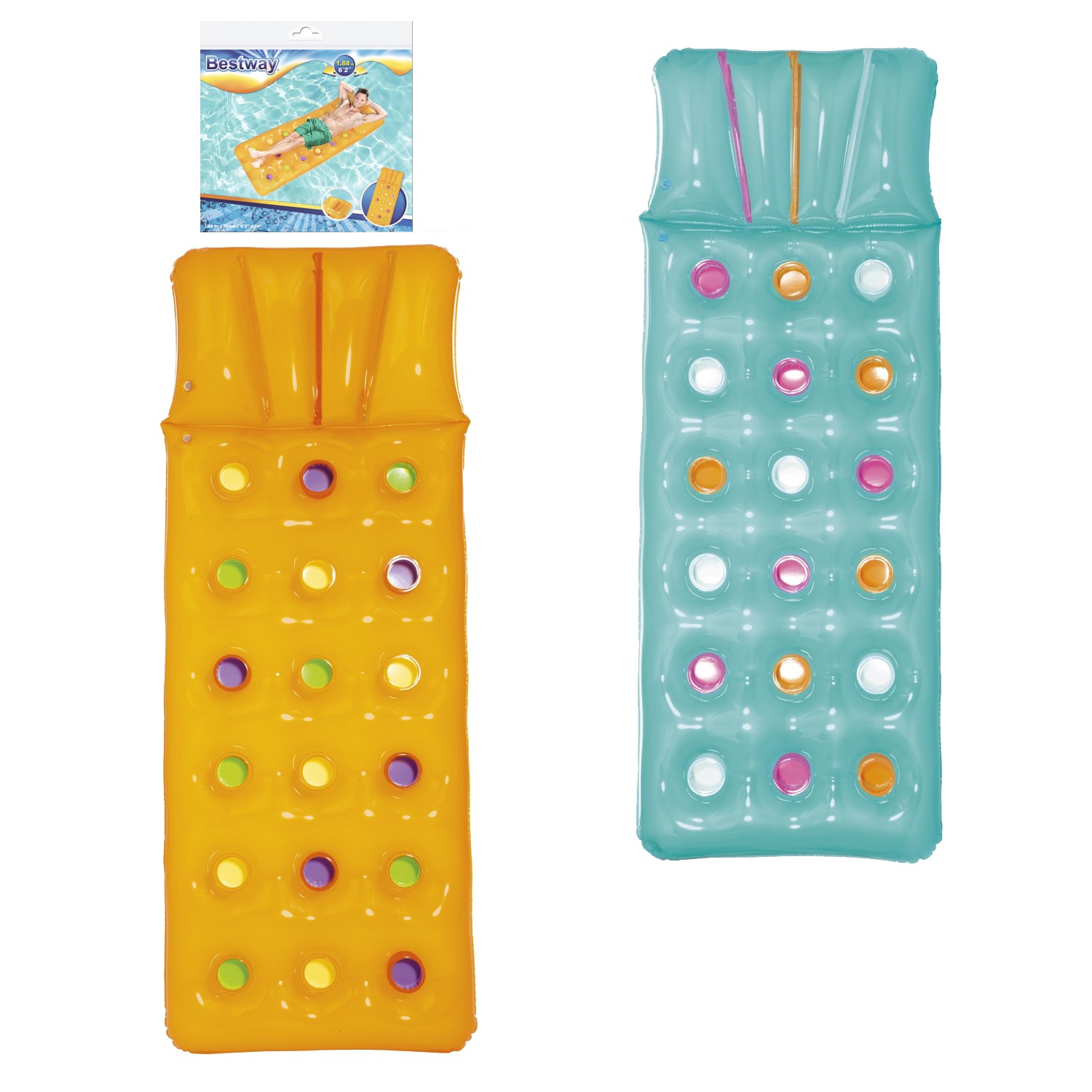 Разработанный для того, чтобы побудить детей (и взрослых) к активности и веселому времяпрепровождению на свежем воздухе, этот надувной матрас Bestway® Fashion прошел испытания на качество и ориентирован на чистое удовольствие. Плавайте под солнцем с комфортом и в стиле. Матрац Fashion доступен в 2 различных цветах и имеет яркие карманы. Сделанный из спиральных несущих элементов с надувными подушками, плавание под солнцем никогда не было лучше!