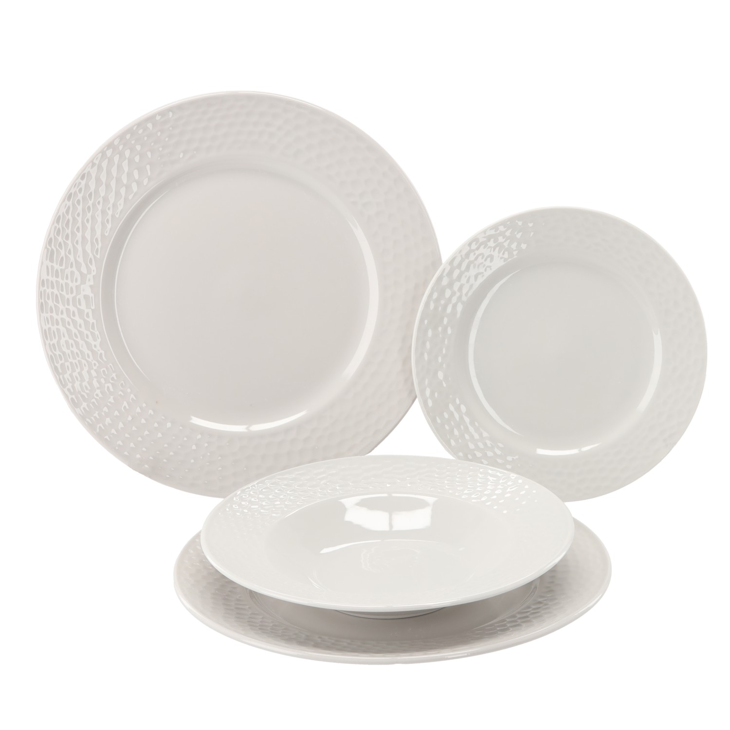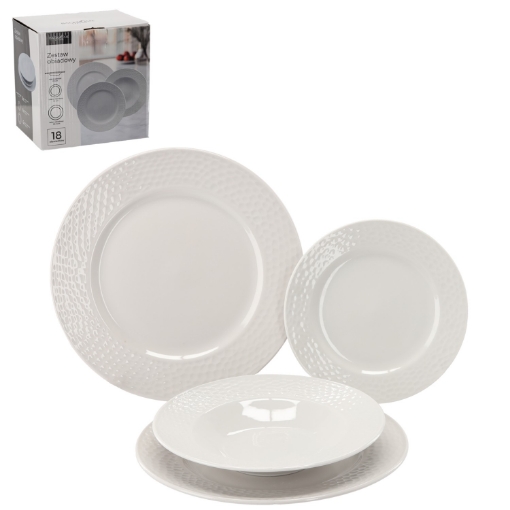 Классический круглый обеденный сервиз из 18 элементов белого цвета, который идеально подойдет как для повседневного использования, так и для особых случаев. Сервиз включает в себя тарелки различных функций и размеров, обеспечивая удобство и элегантность на столе.