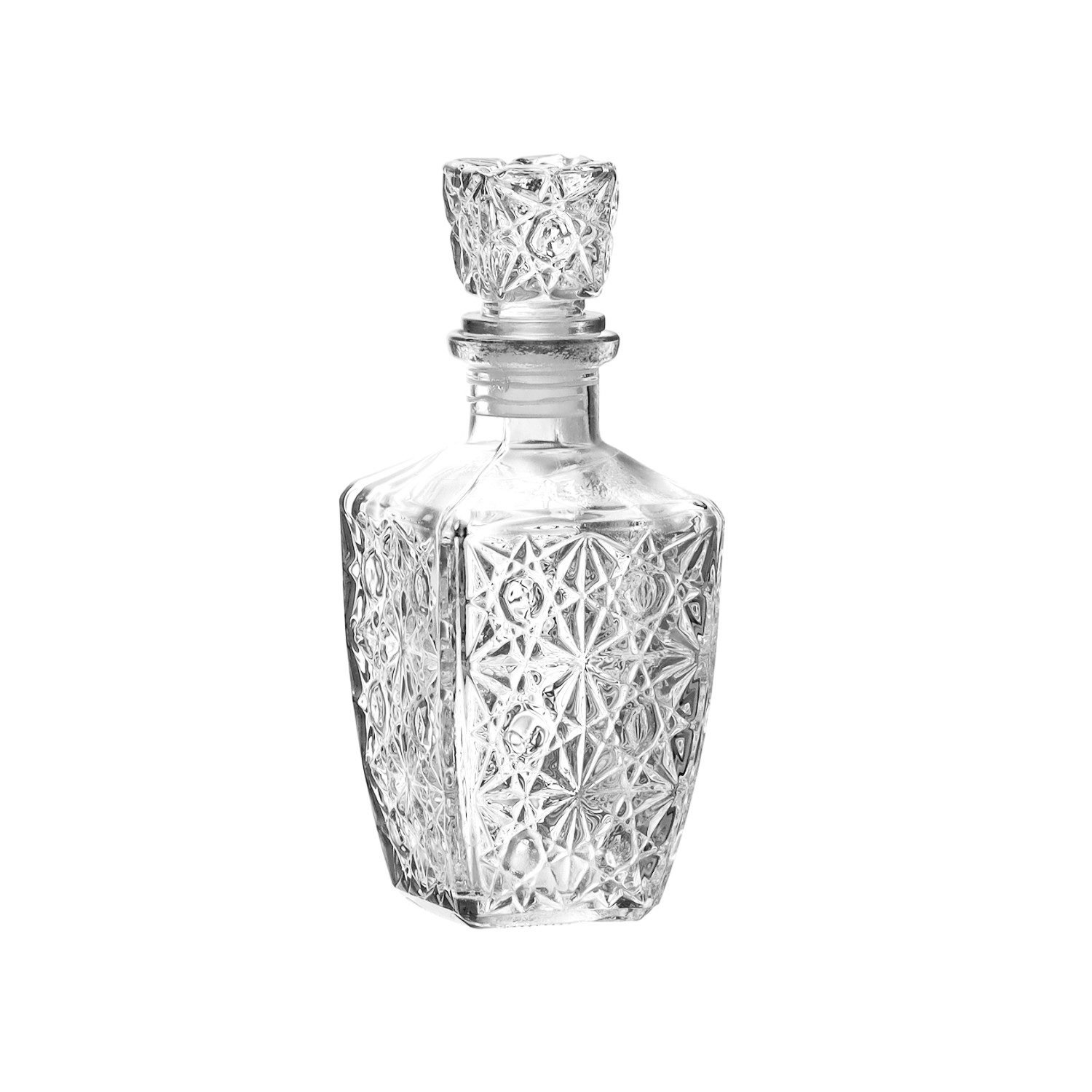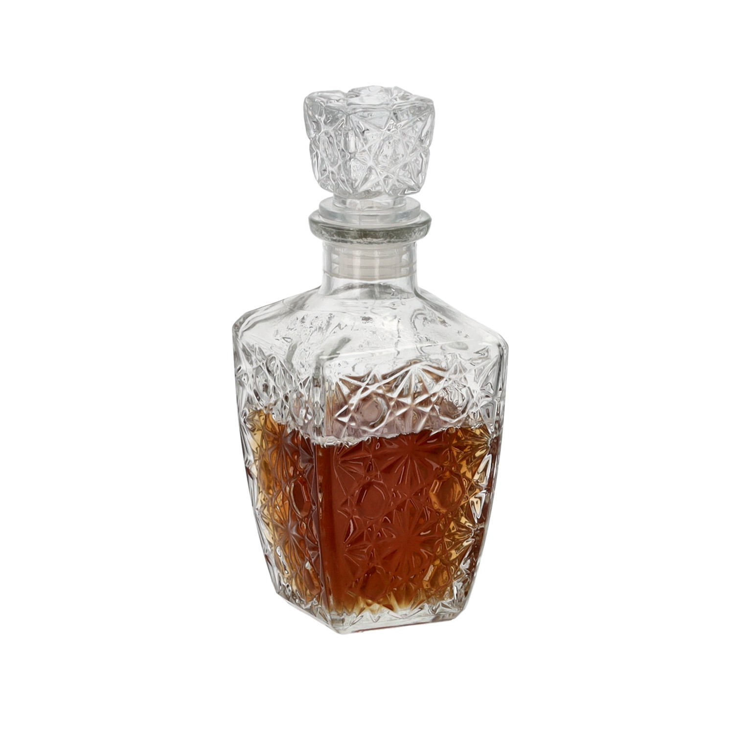 Украшенная стеклянная графин со стеклянной пробкой будет отлично смотреться в вашем баре. Изготовленная из толстого стекла, она прекрасно подчеркнет домашние настойки и вина. Она точно имитирует хрустальную графин. Пробка дополнена уплотнителем, благодаря чему напитки не потеряют свои вкусовые и ароматические качества.