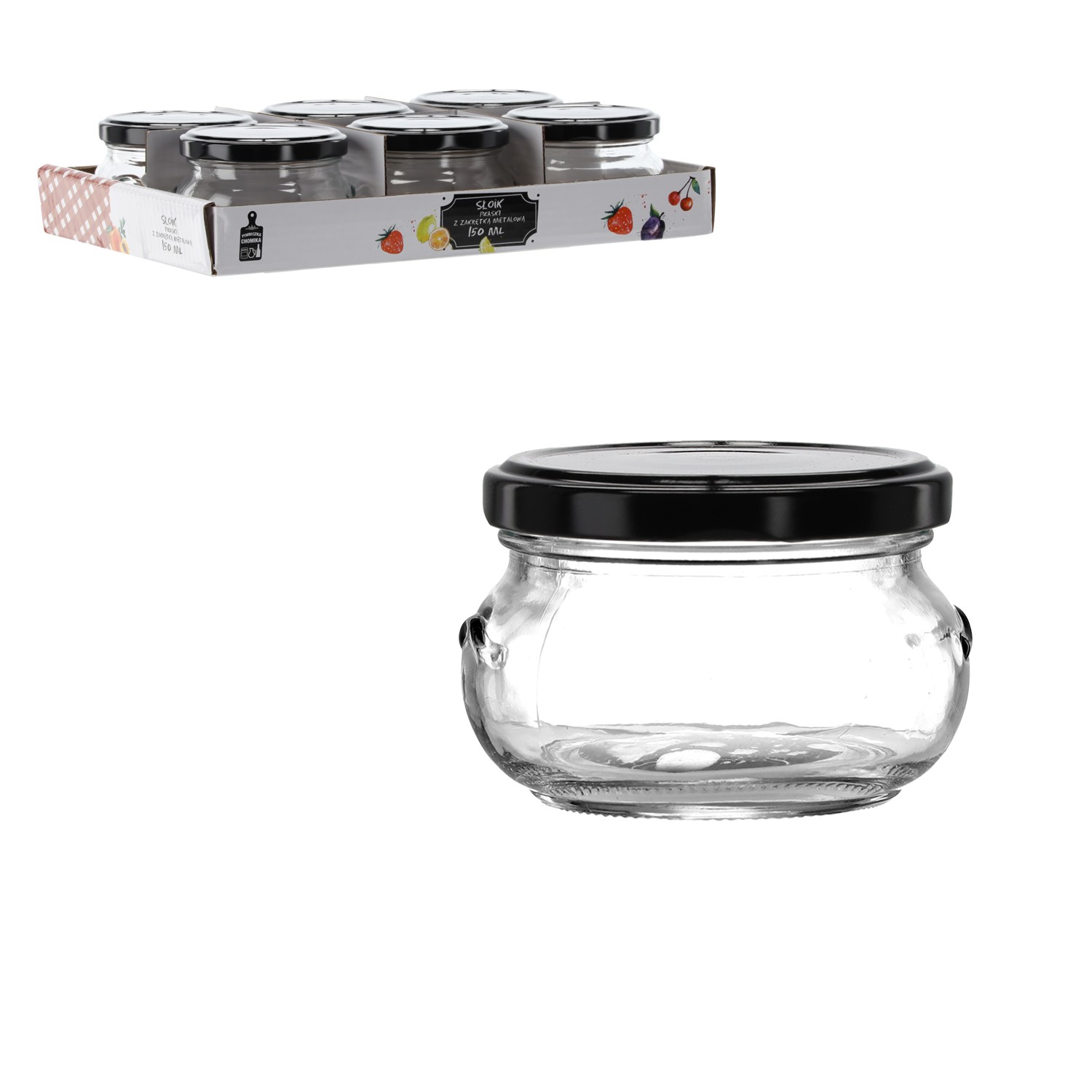 Стеклянная банка объемом 150 мл с черной металлической крышкой является идеальным вариантом для хранения джемов, меда, специй и других мелких продуктов. Благодаря герметичной крышке банка обеспечивает свежесть хранящихся в ней продуктов. Продукт упакован в дисплей по 6 штук, что облегчает презентацию и розничную продажу.