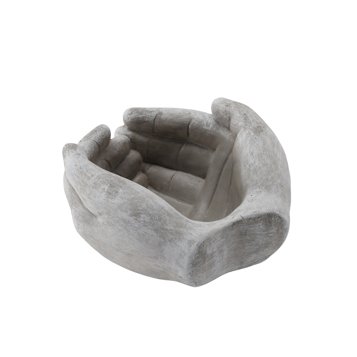 Тщательно изготовленный цветочный горшок/кашпо в форме руки. Универсальный и стильный, идеально подходит для различных цветочных композиций — как для сада, так и для террасы, а также в качестве основы для надгробной композиции. Изготовлен из серого цемента.