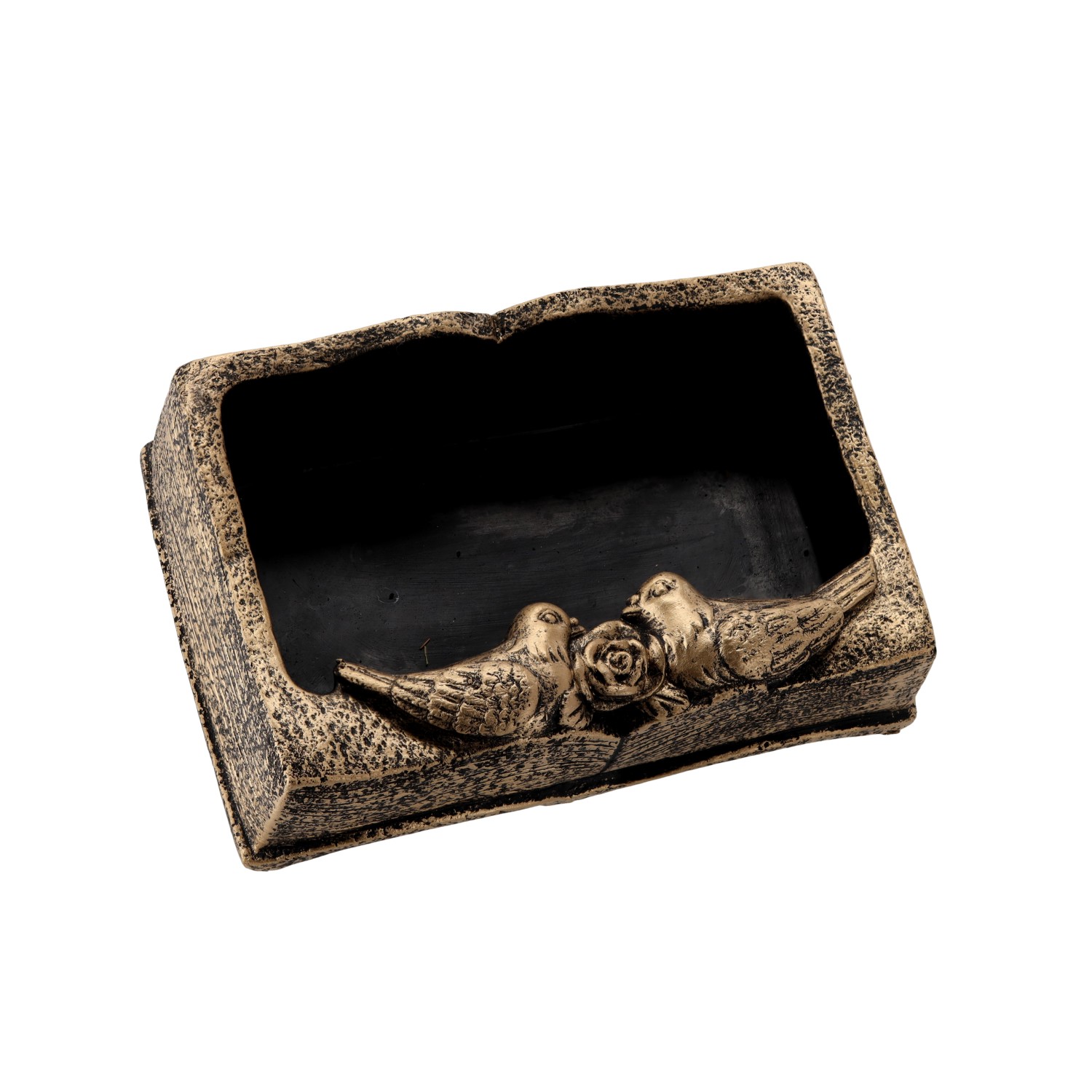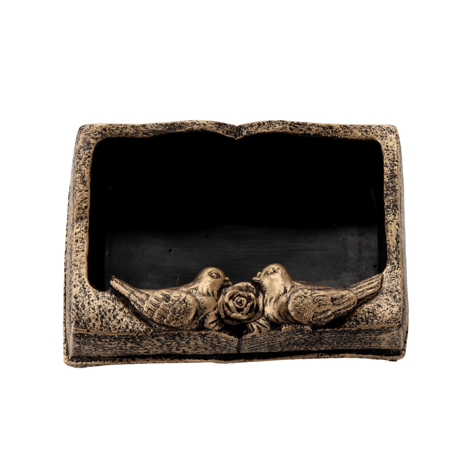 Тщательно изготовленный горшок/кашпо в форме открытой книги, выполненный из цемента в элегантном золотистом цвете. Идеальная основа для надгробных композиций, которая подчеркнет уникальность и память о близких.