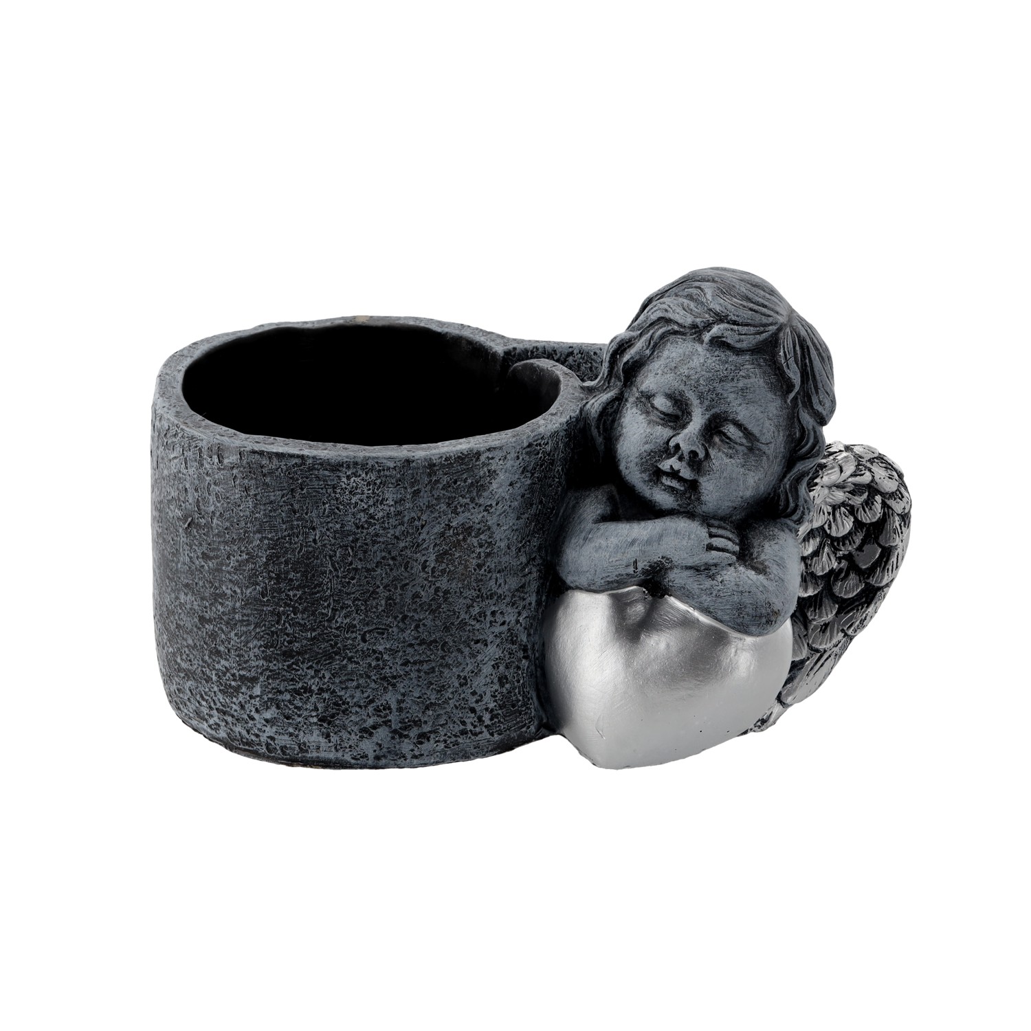 Элегантный кладбищенский вазон, изготовленный из прочного цемента, украшенный изящным ангелом в темно-серо-серебристой цветовой гамме. Идеально подходит для того, чтобы с достоинством и уважением подчеркнуть место памяти близких. Устойчив к погодным условиям, благодаря чему сохраняет красивый вид в течение всего года.