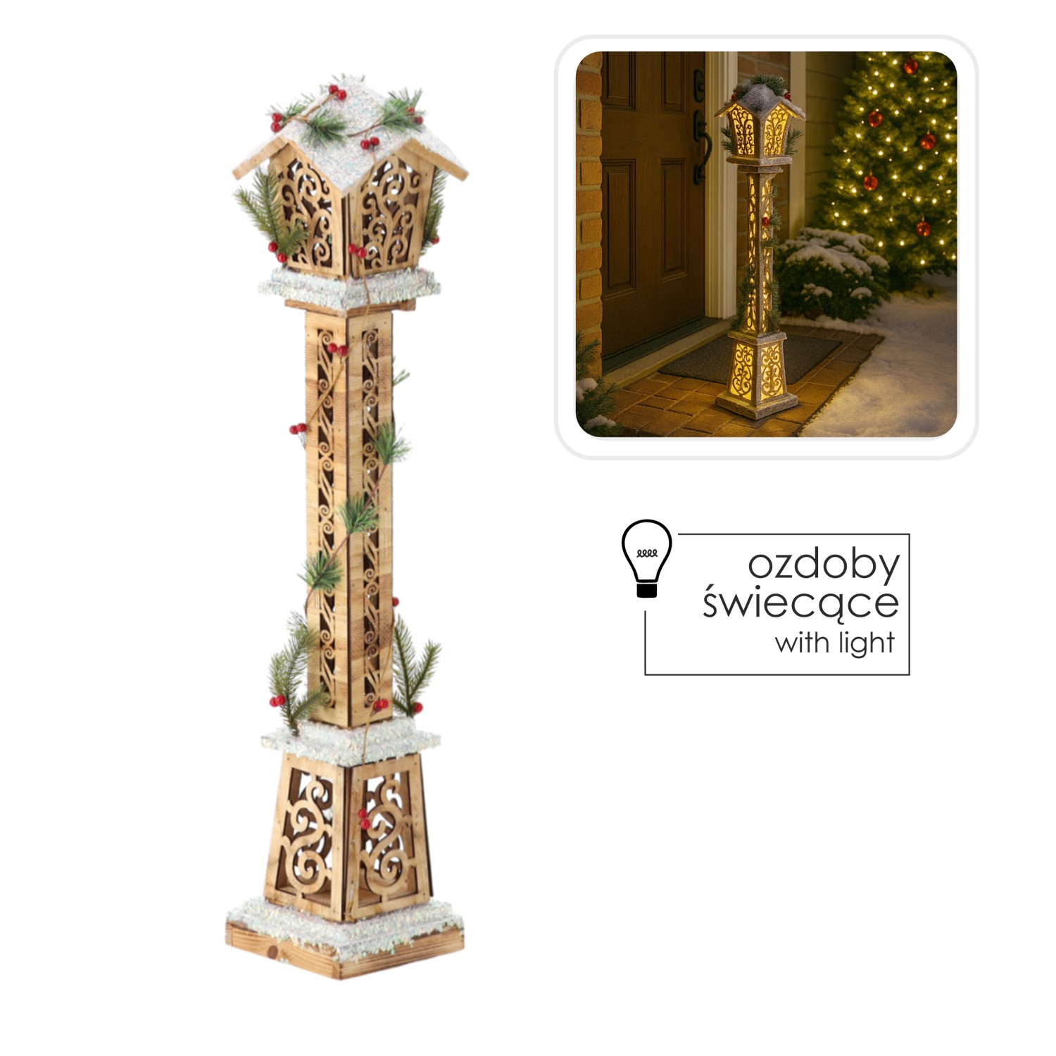 🎄 ПРАЗДНИЧНЫЙ ДЕРЕВЯННЫЙ ФОНАРЬ БРАЗОВЫЙ LED 16 x 16 x 85 СМ 🎅
