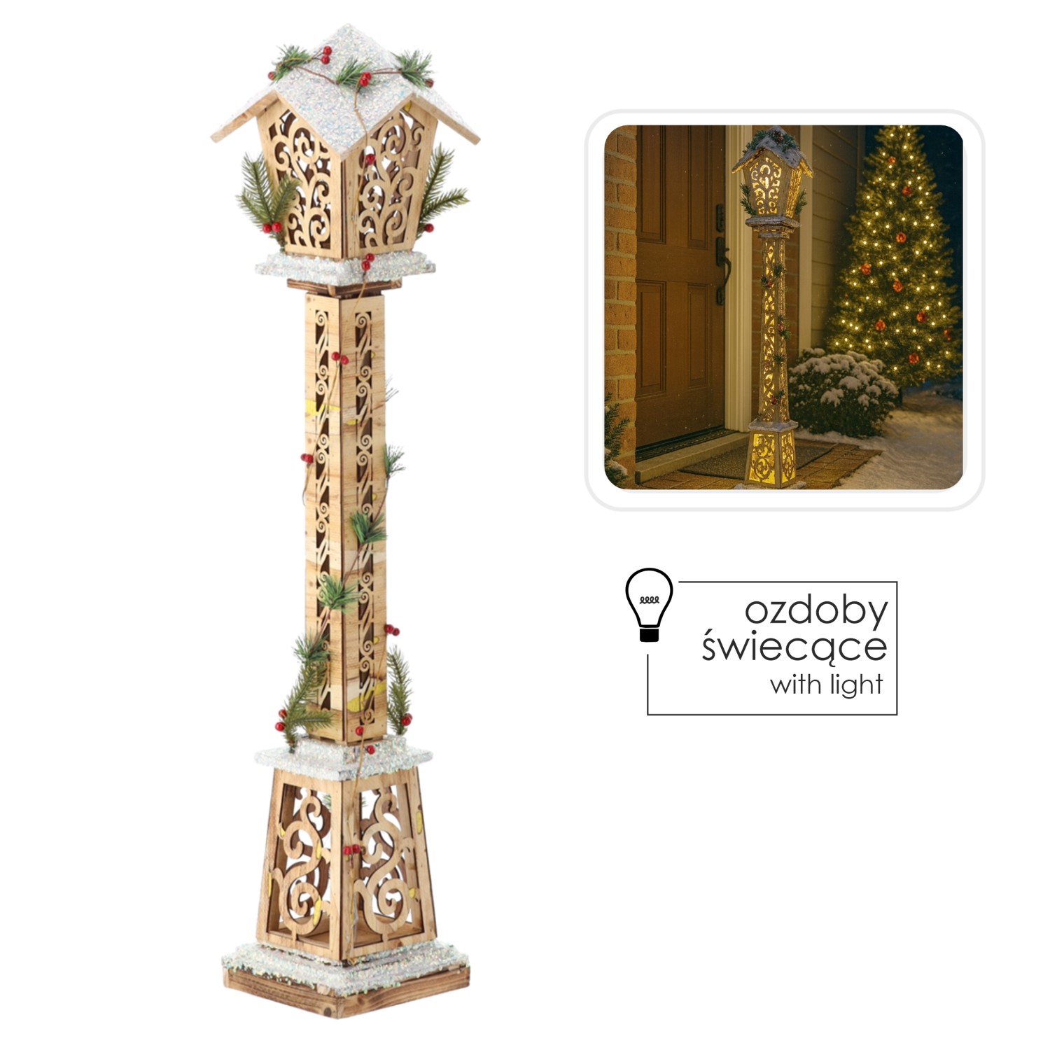 🎄 Рождественский деревянный фонарь LED 100 см – рустикальный шарм и волшебный свет праздника! ✨