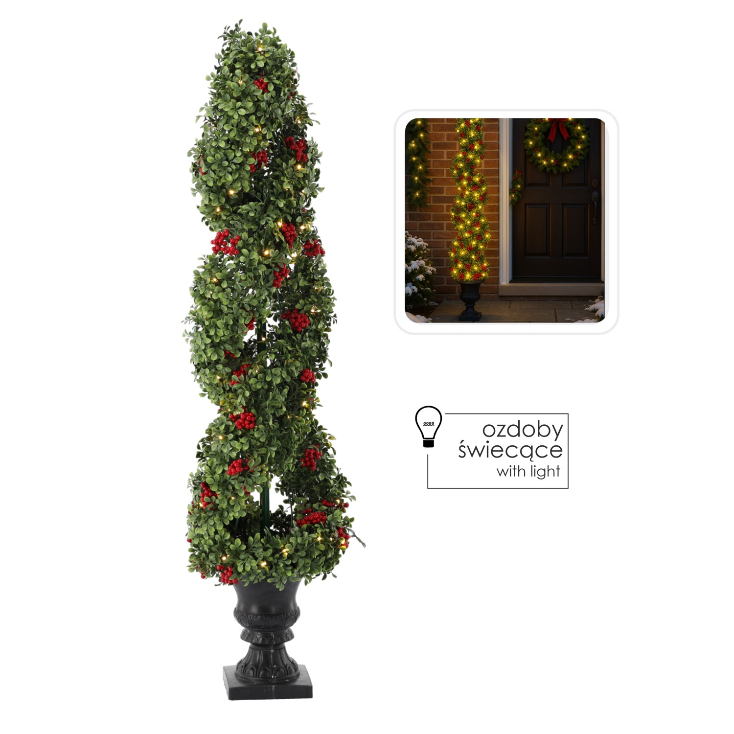 Рождественская елка LED 150 см является символом элегантности и праздничного настроения. Благодаря своей форме и тонкому свету она добавит интерьеру волшебства, спокойствия и тепла, а декоративные акценты из рябины подчеркнут особый характер Рождества.Это отличный выбор для тех, кто ценит стиль, удобство и праздничную атмосферу в ее лучшем проявлении.