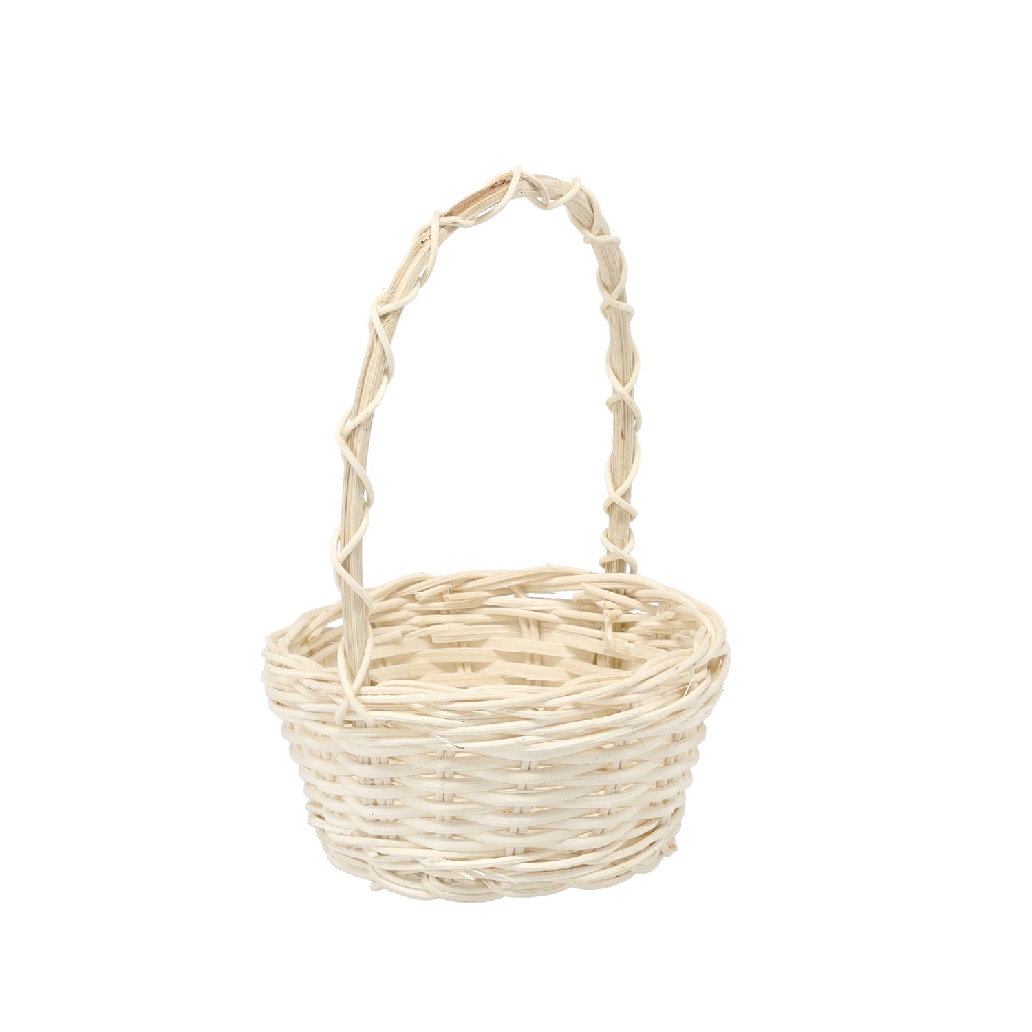 Круглая ротанговая корзина S размером 13,5x10,5x6 см (высота с ручкой составляет 18 см). Она станет идеальным украшением весеннего праздничного стола. Благодаря простой конструкции и аккуратной отделке ее можно сочетать с любыми аксессуарами, создавая разнообразные декорации.