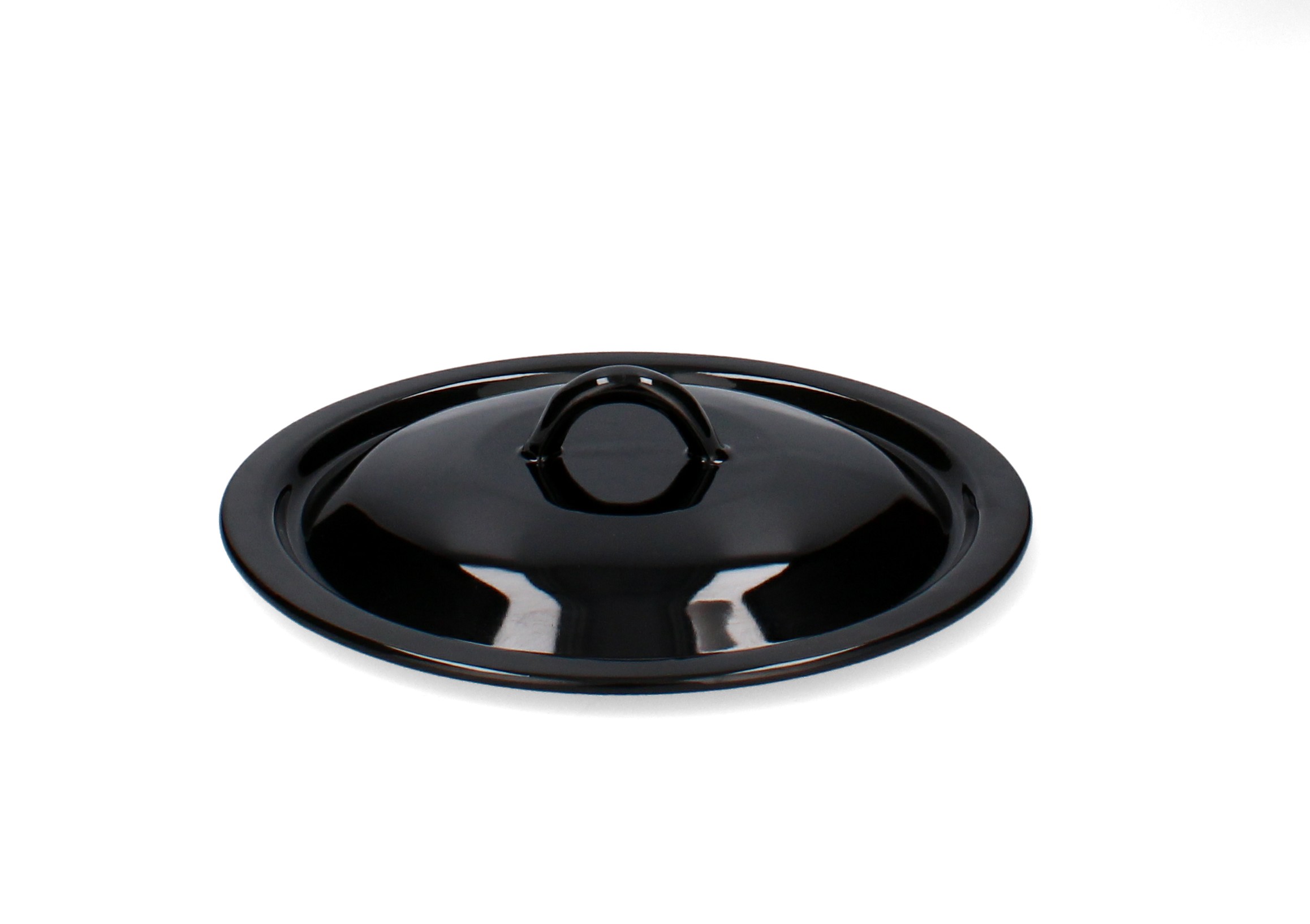 Прочная эмалированная крышка черного цвета диаметром 18 см. Идеально подходит для кастрюль и другой посуды.