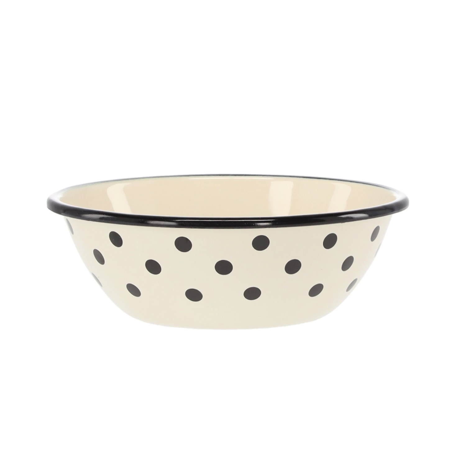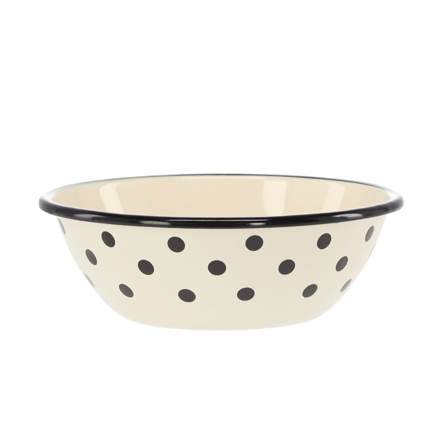Очаровательная эмалированная миска объемом 0,6 литра и диаметром 16,5 см кремового цвета с декоративным узором в горошек. Идеально подходит для подачи супов, салатов, фруктов или закусок. Эмалевое покрытие устойчиво к коррозии, легко моется и безопасно при контакте с пищевыми продуктами, а классический дизайн придает ему неподвластный времени шарм.