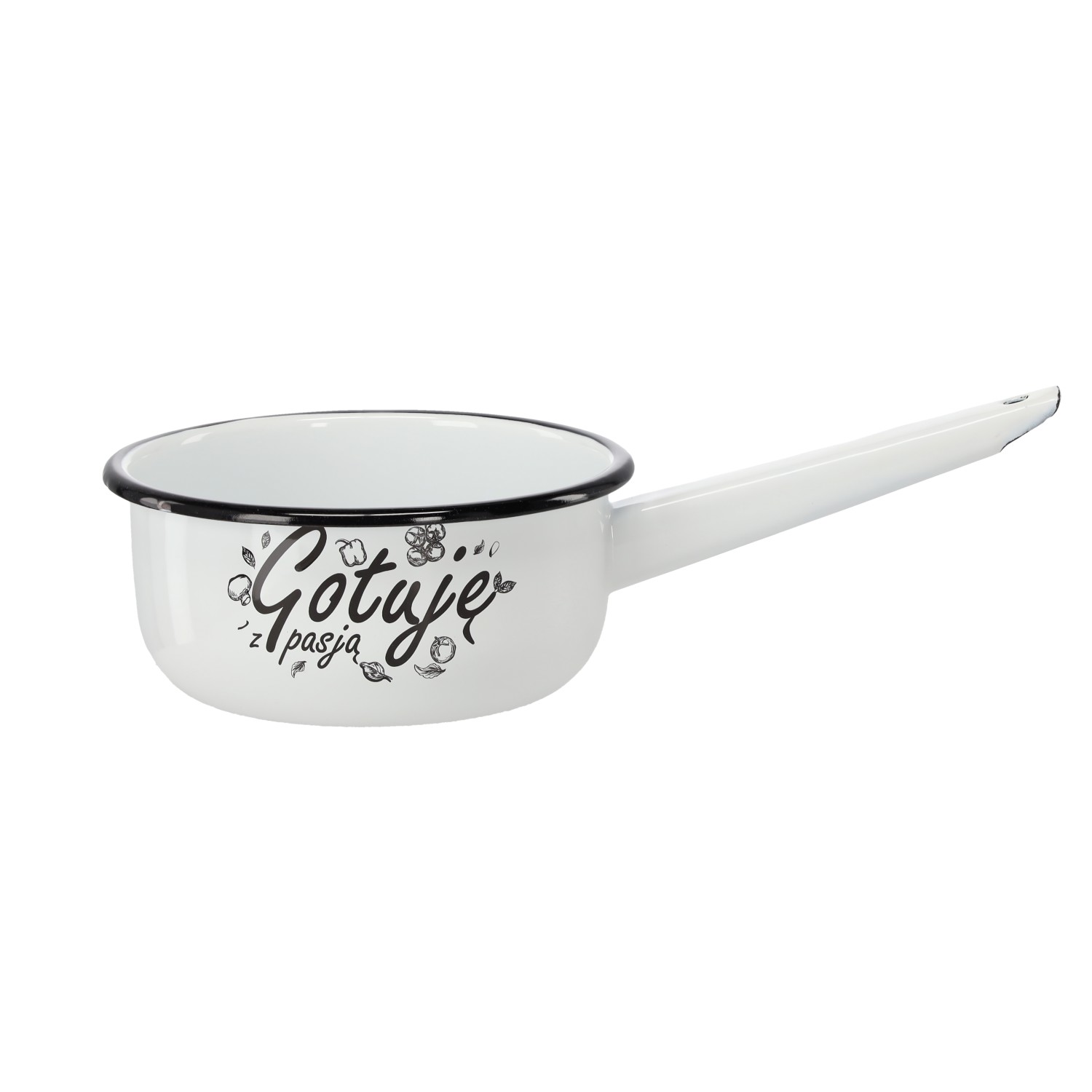 Практичная эмалированная кастрюля объемом 1,5 литра и диаметром 16 см белого цвета с декоративной надписью «Готовлю с увлечением». Идеально подходит для подогрева молока, приготовления соусов или небольших порций блюд. Эмалевое покрытие устойчиво к коррозии, легко моется и безопасно при контакте с пищевыми продуктами. Оснащен удобной ручкой, которая обеспечивает комфорт и безопасность использования.