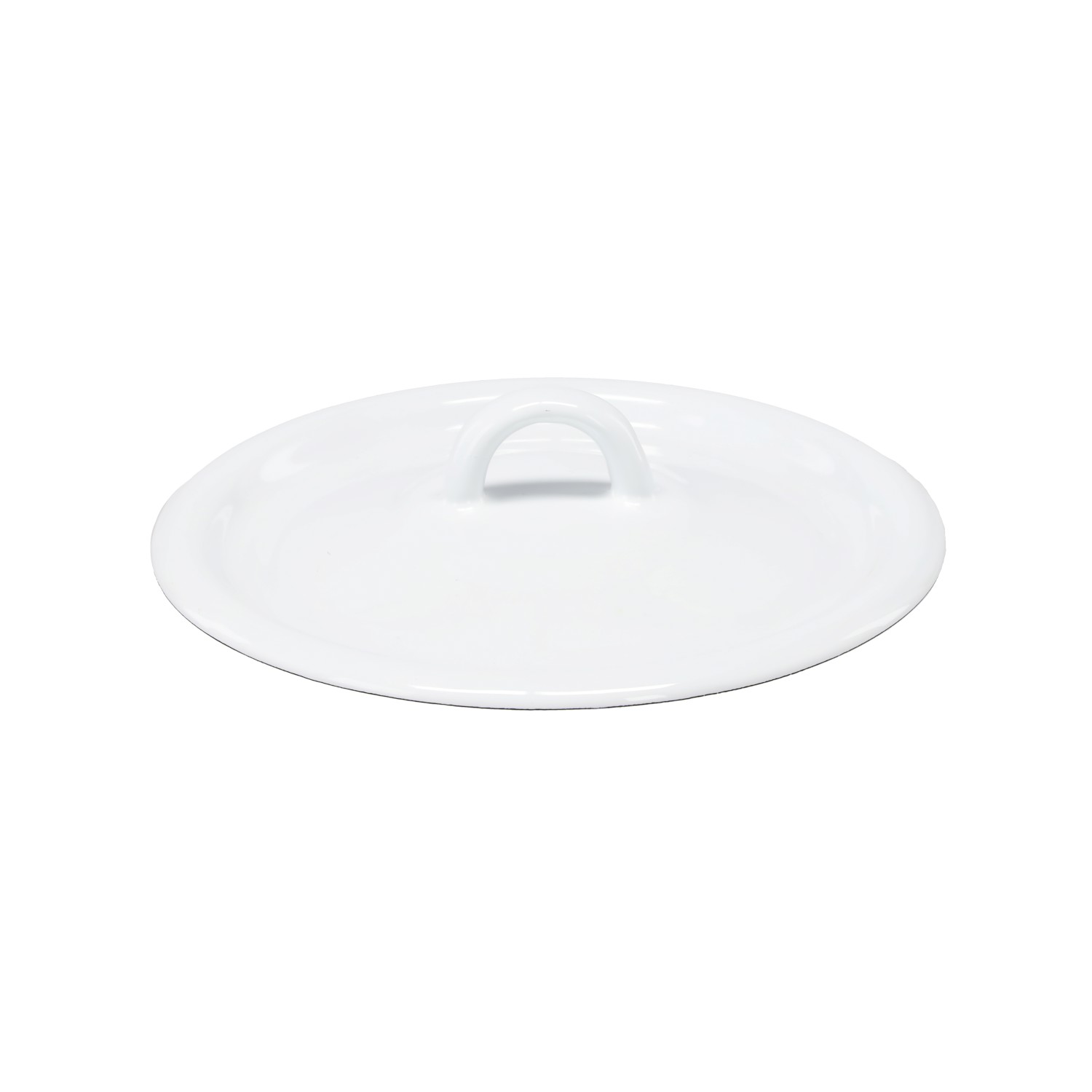 Прочная эмалированная крышка белого или кремового цвета диаметром 16 см. Идеально подходит для кастрюль и посуды, сочетая эстетику с функциональностью.