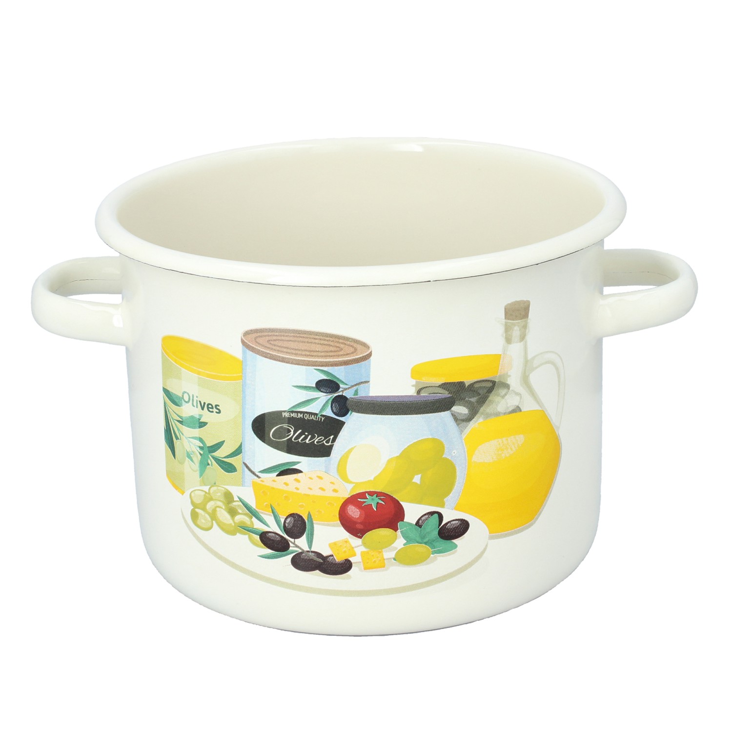 Практичная эмалированная кастрюля объемом 4,5 литра и диаметром 20 см кремового цвета с декоративным узором «оливка». Идеально подходит для приготовления больших порций, сочетая в себе прочность и эстетику.
