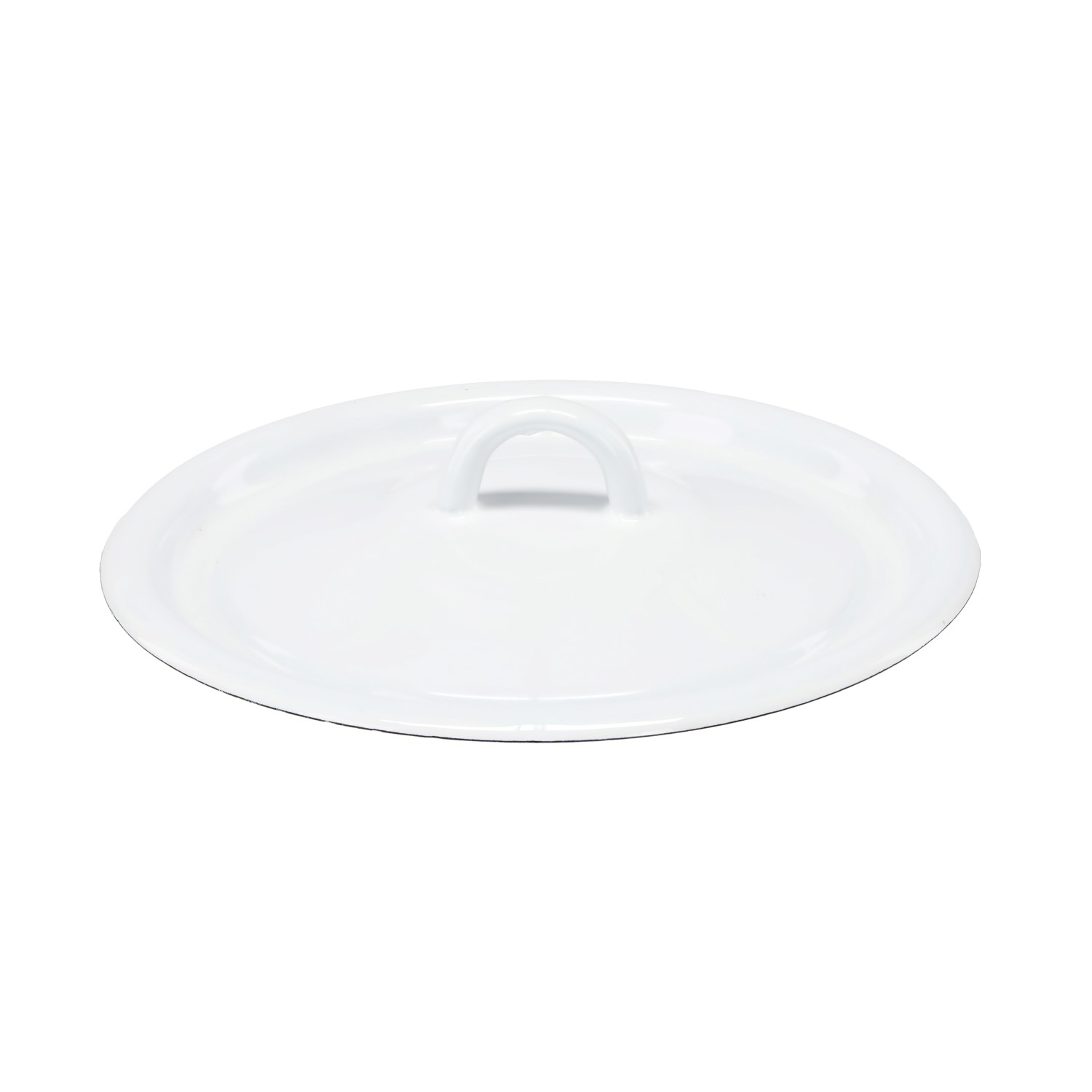 Прочная эмалированная крышка белого цвета диаметром 18 см, идеально подходит для различных кухонных принадлежностей. Сочетает в себе функциональность и эстетичный внешний вид.