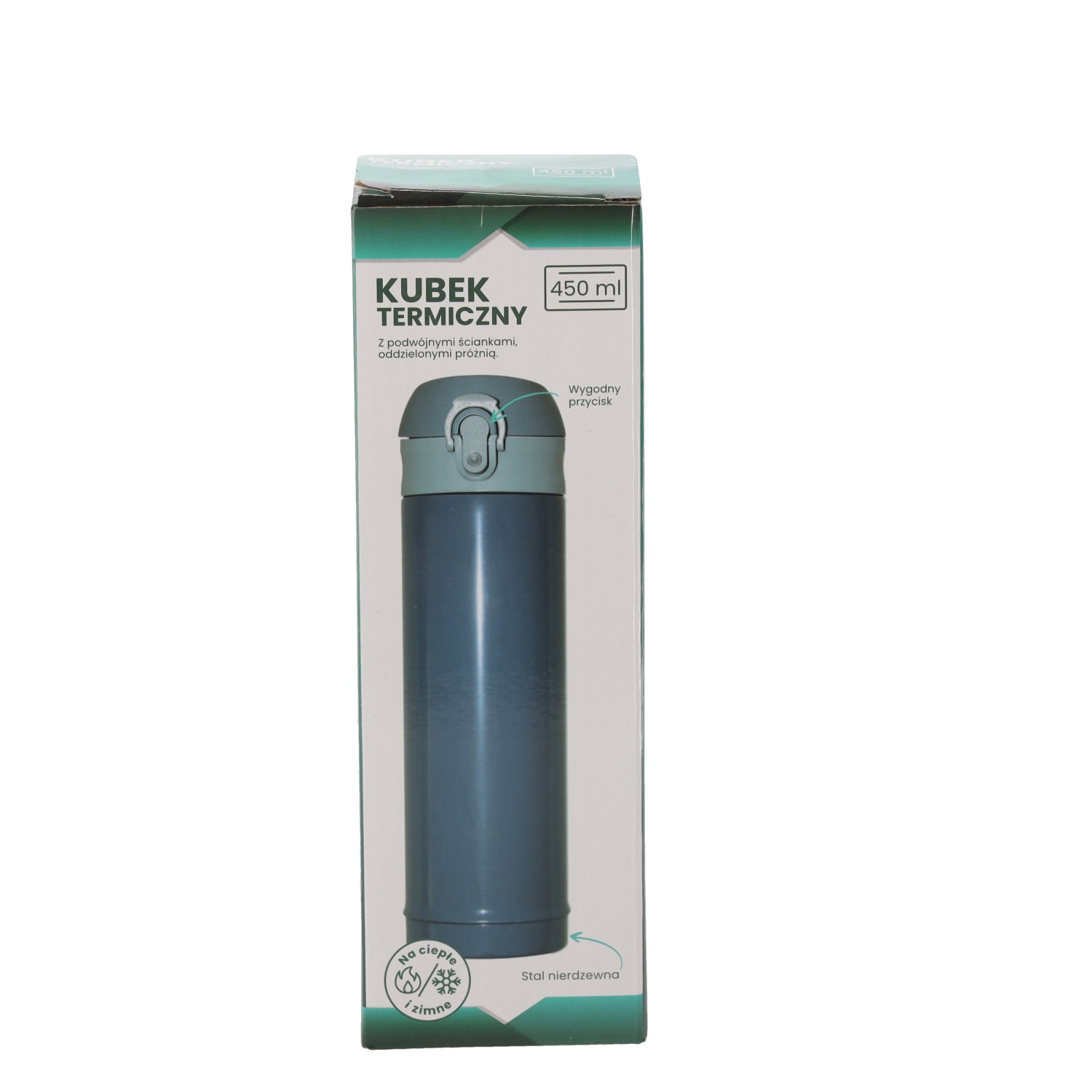 Вместимость: 0,45 лМатериал: нержавеющая стальКонструкция: вакуумнаяЦвет: матовый серый (стандартное лакокрасочное покрытие)Крышка: крышка типа push, изготовленная из полипропиленаМожно ли мыть в посудомоечной машине: только ручная мойкаРазмеры продукта: 6,5 × 6,5 × 22,7 смВес: 289 гСохранение температуры: до 6 часов