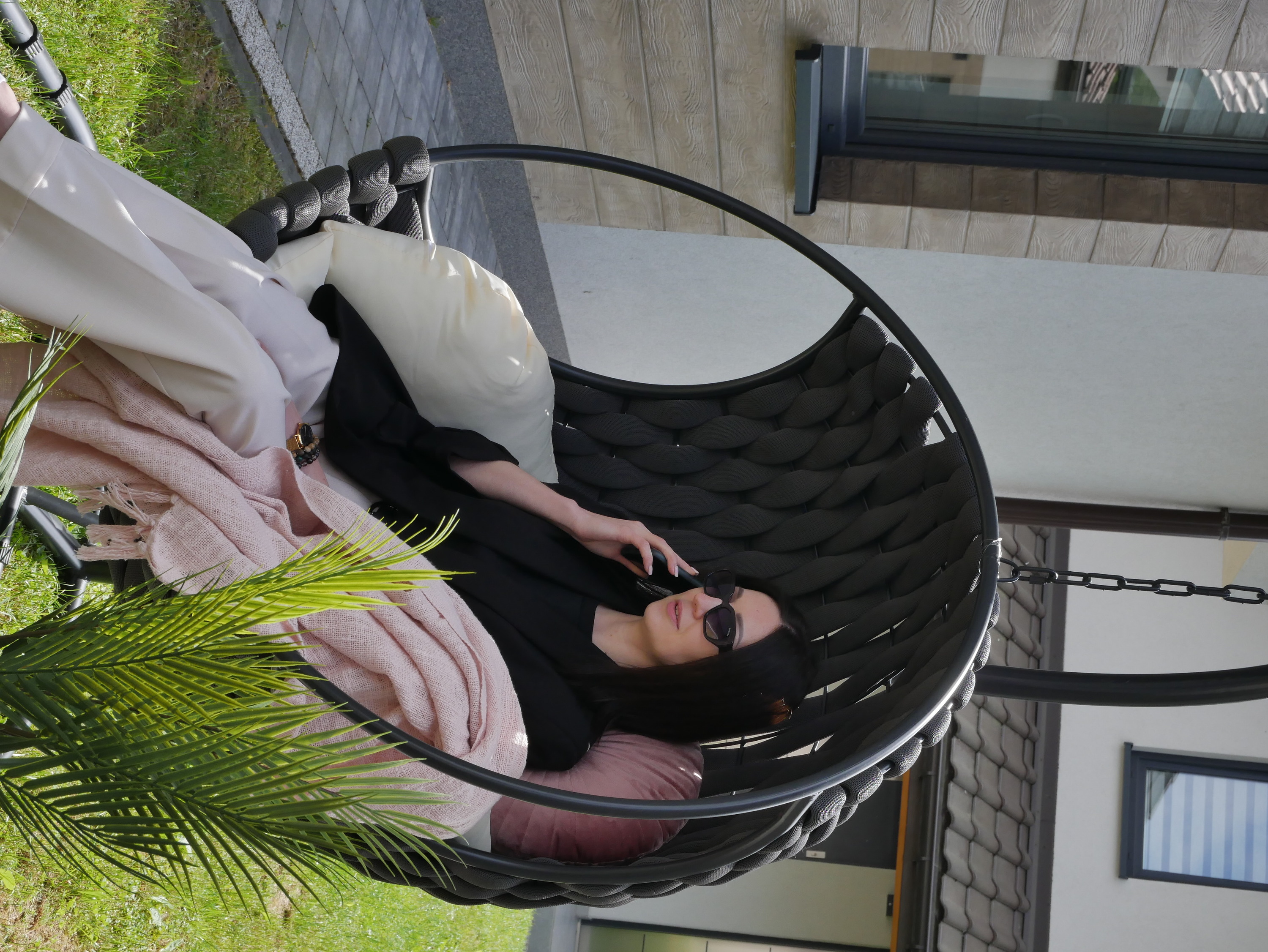 Подвесное кресло Tabani Garden Line в элегантном черном цвете представляет собой идеальное сочетание стиля, комфорта и функциональности. Модель FAT0039 с темно-серой подушкой и устойчивой черной рамой отлично подойдет в качестве подвесного садового кресла, кресла для балкона, террасы, а также для интерьеров в стиле бохо, модерн или скандинавском стиле.