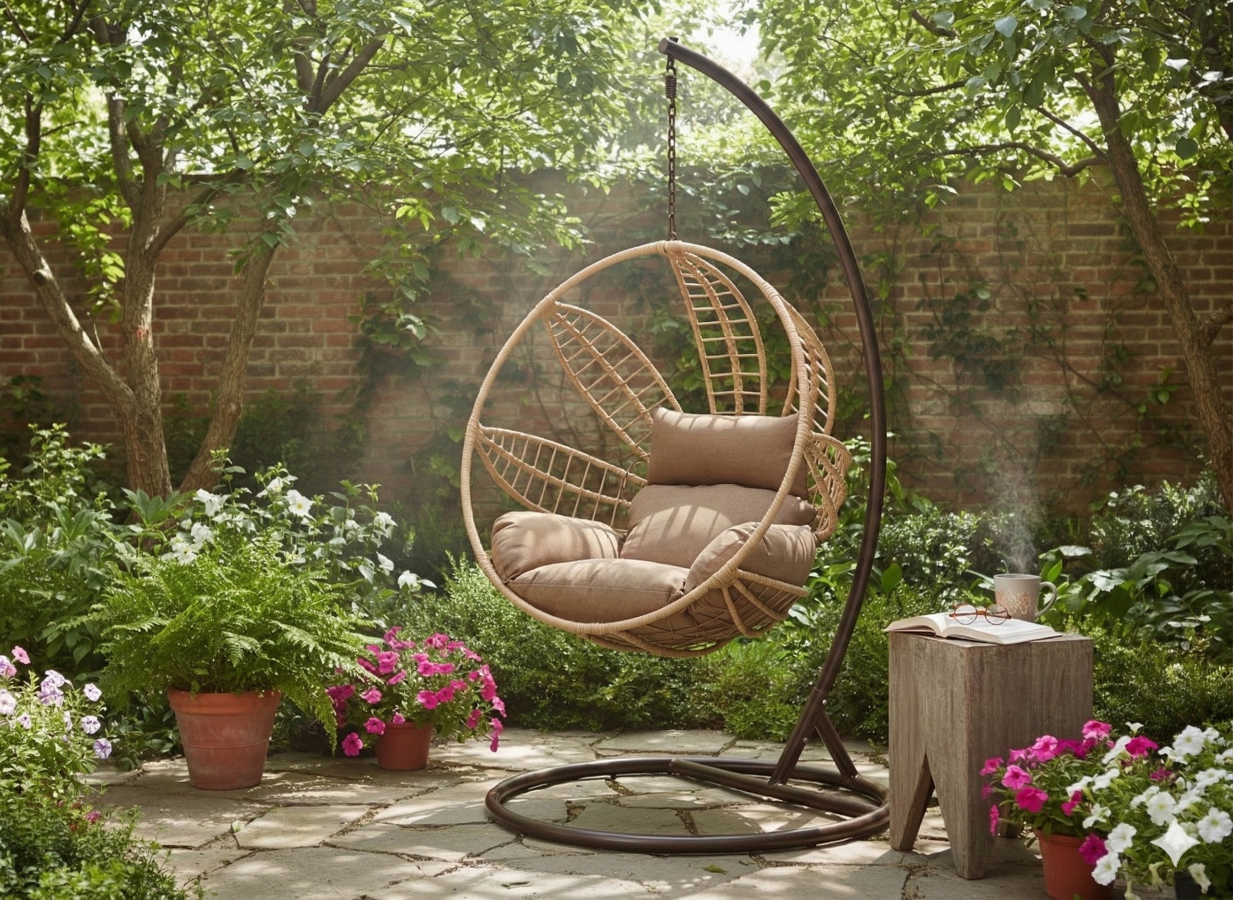 Он восхищает натуральным плетением, элегантной коричневой рамой и исключительным комфортом. Идеально подходит для сада, террасы или уютного уголка в доме.