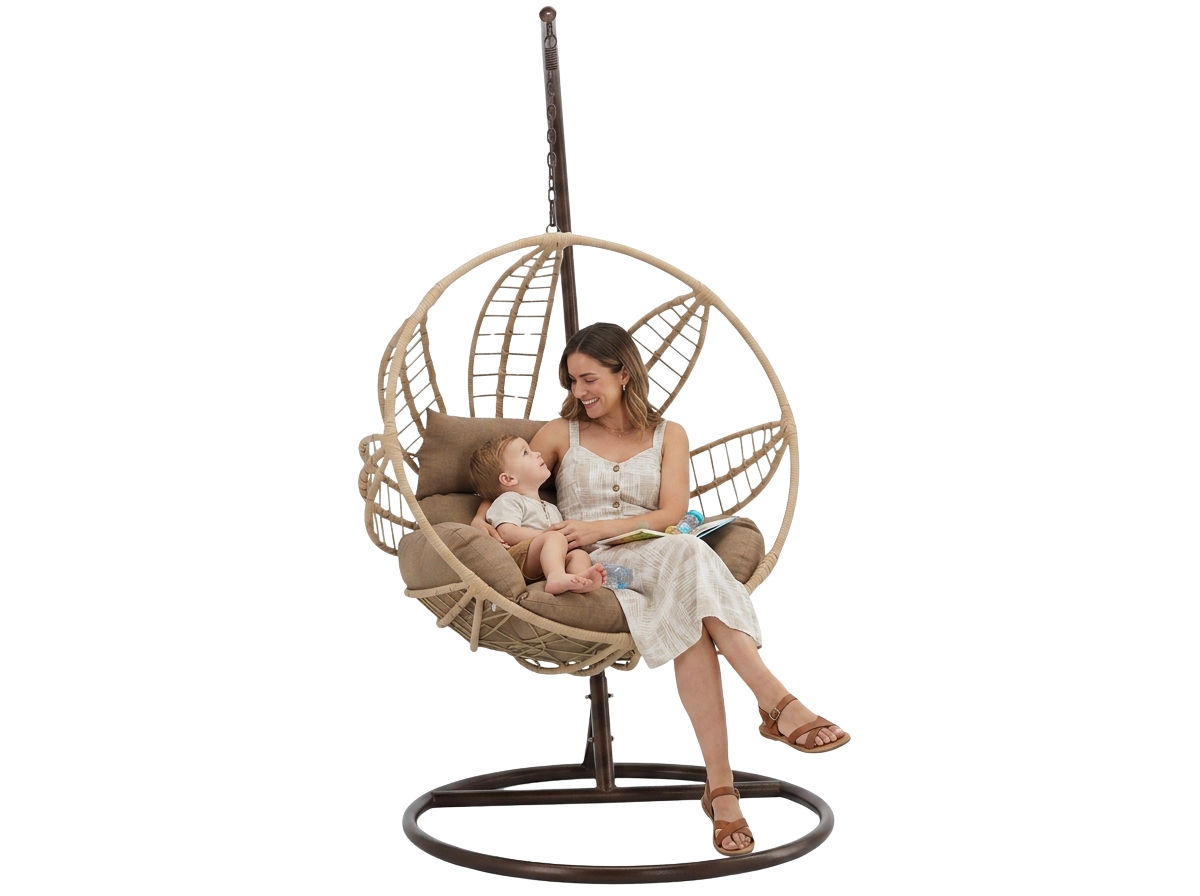 Подвесное кресло SOBRE — это сочетание комфорта, стиля и качества. Идеально подходит для отдыха на свежем воздухе или в качестве эффектного акцента в домашнем интерьере. Оно дарит роскошь отдыха, которую вы полюбите с первого использования 💛