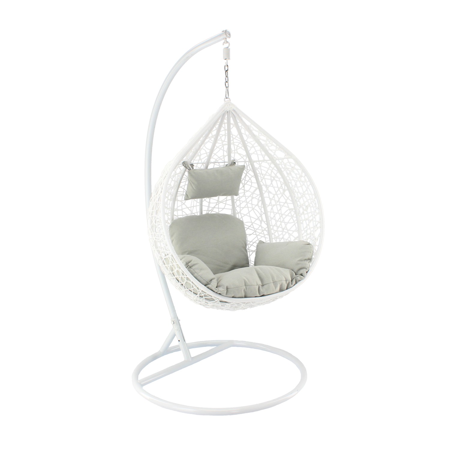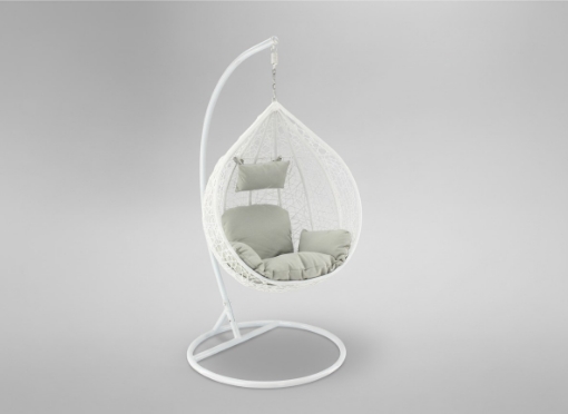 БЕЛЫЙ ВИСЯЧИЙ КРЕСЛО, ПОДУШКА - СЕРАЯ, РАМА - БЕЛАЯ