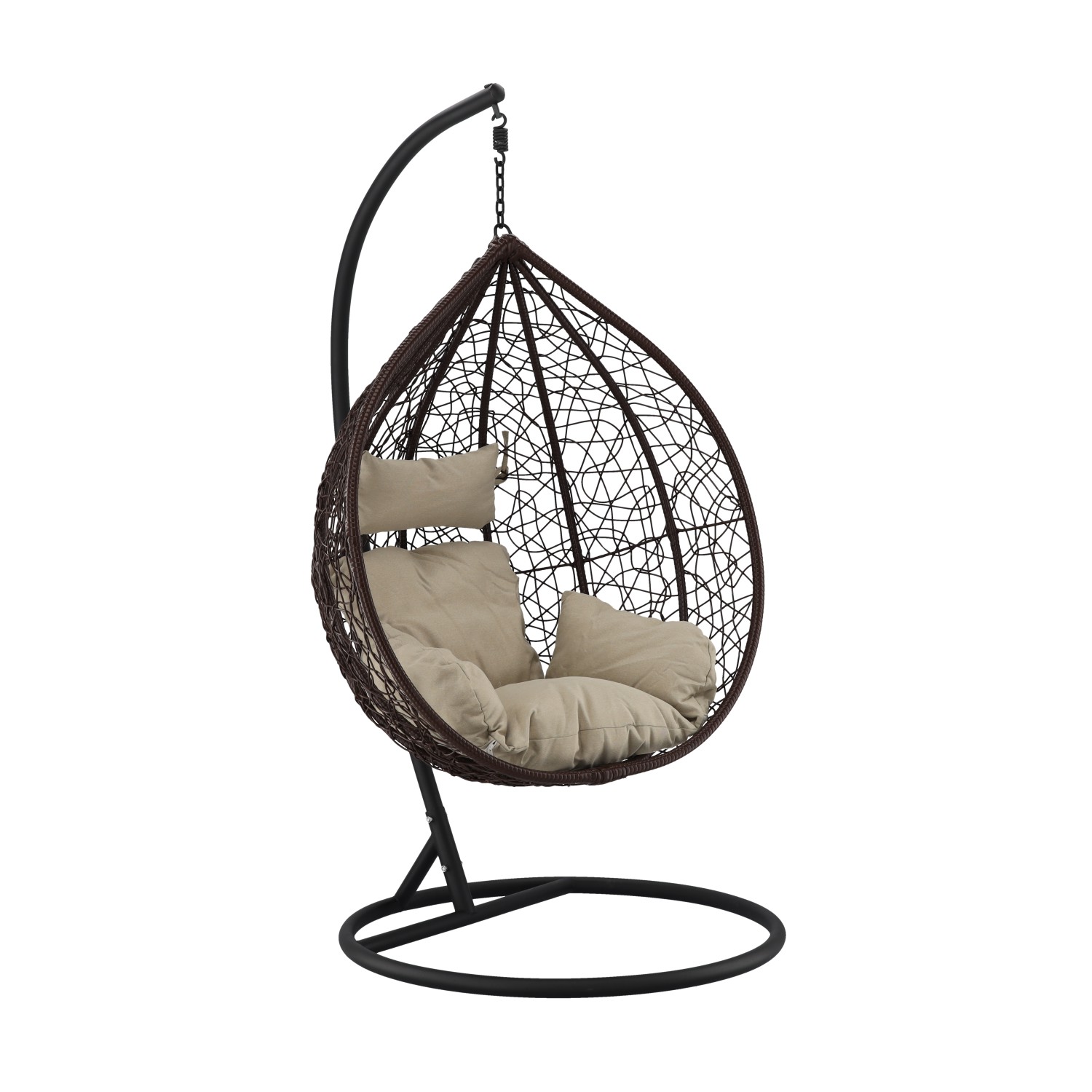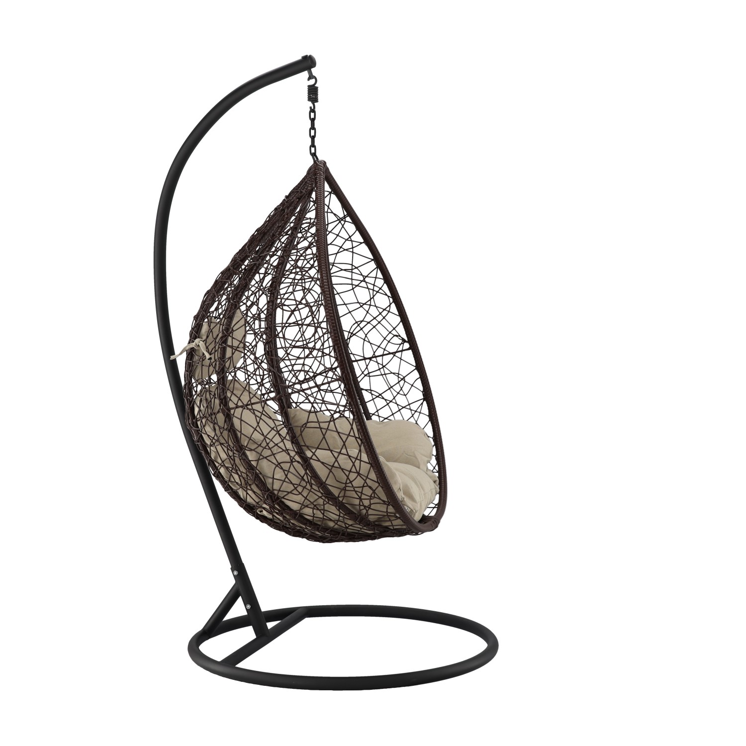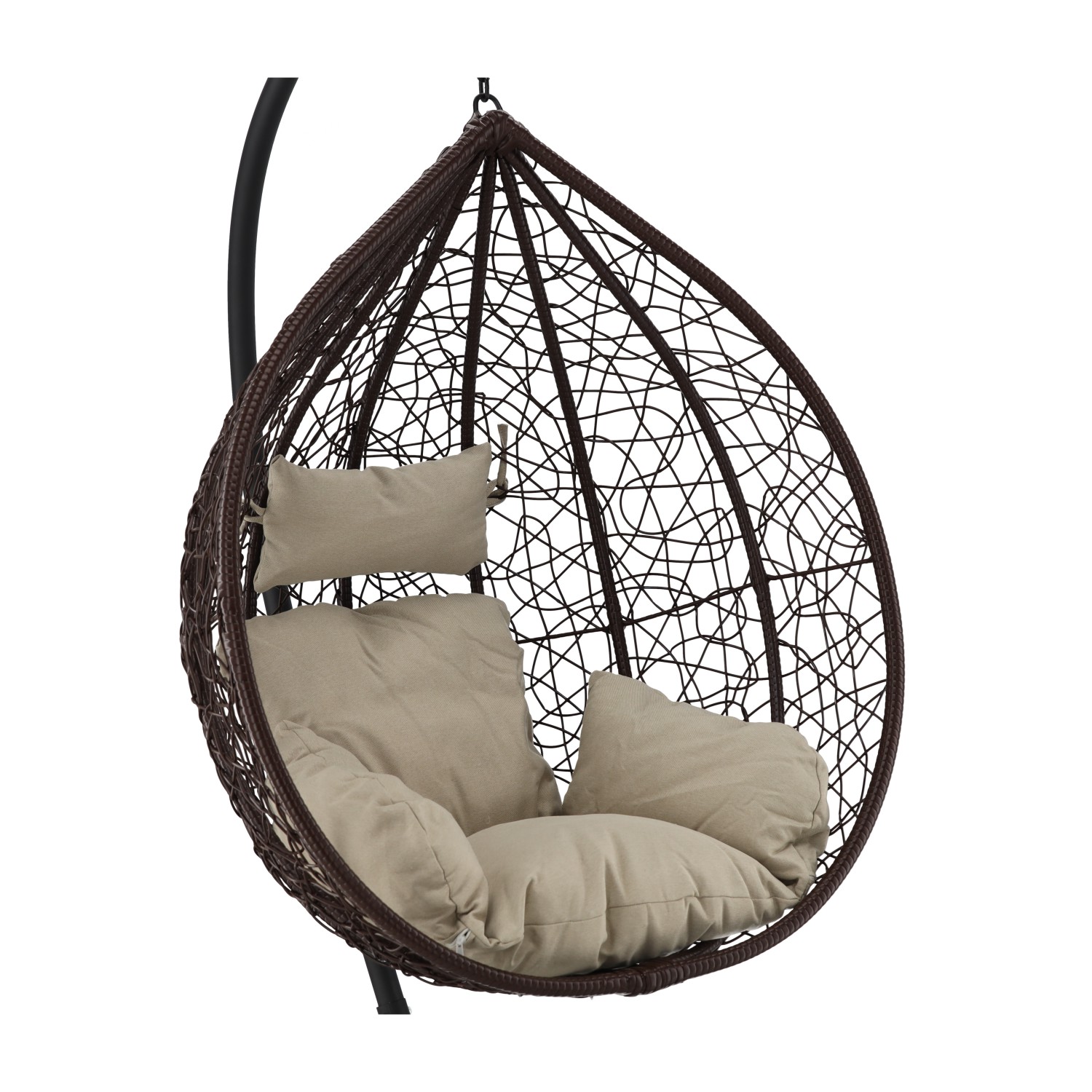 ПОДВЕСНОЕ КРЕСЛО КОРИЧНЕВОГО ЦВЕТА, ПОДУШКА — БЕЖЕВАЯ, РАМА — КОРИЧНЕВАЯ 🌰