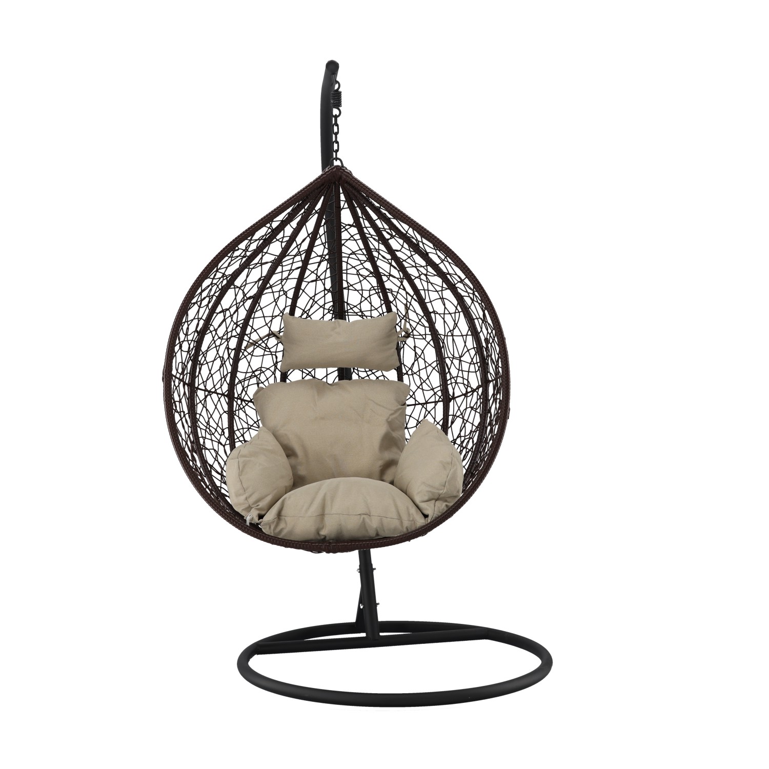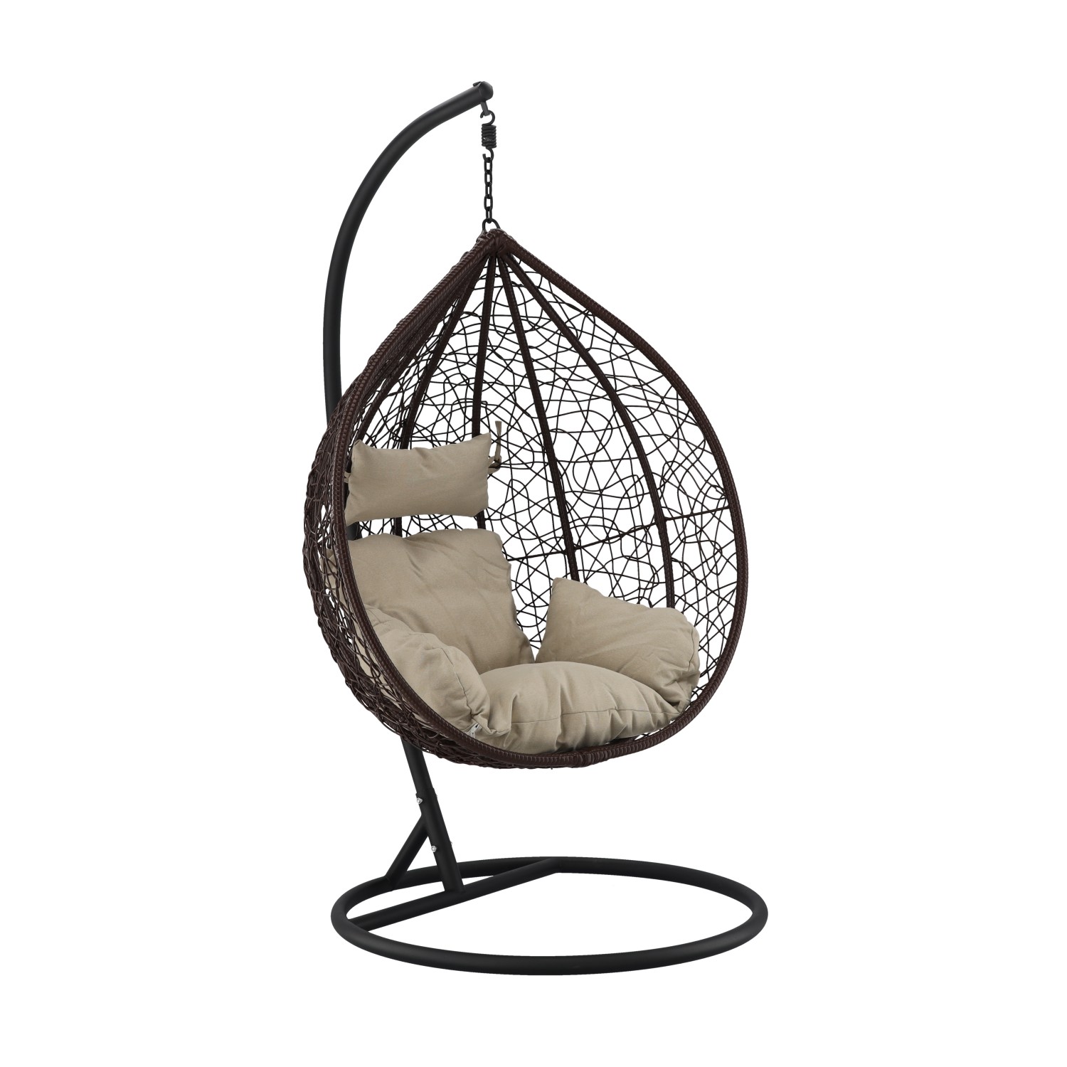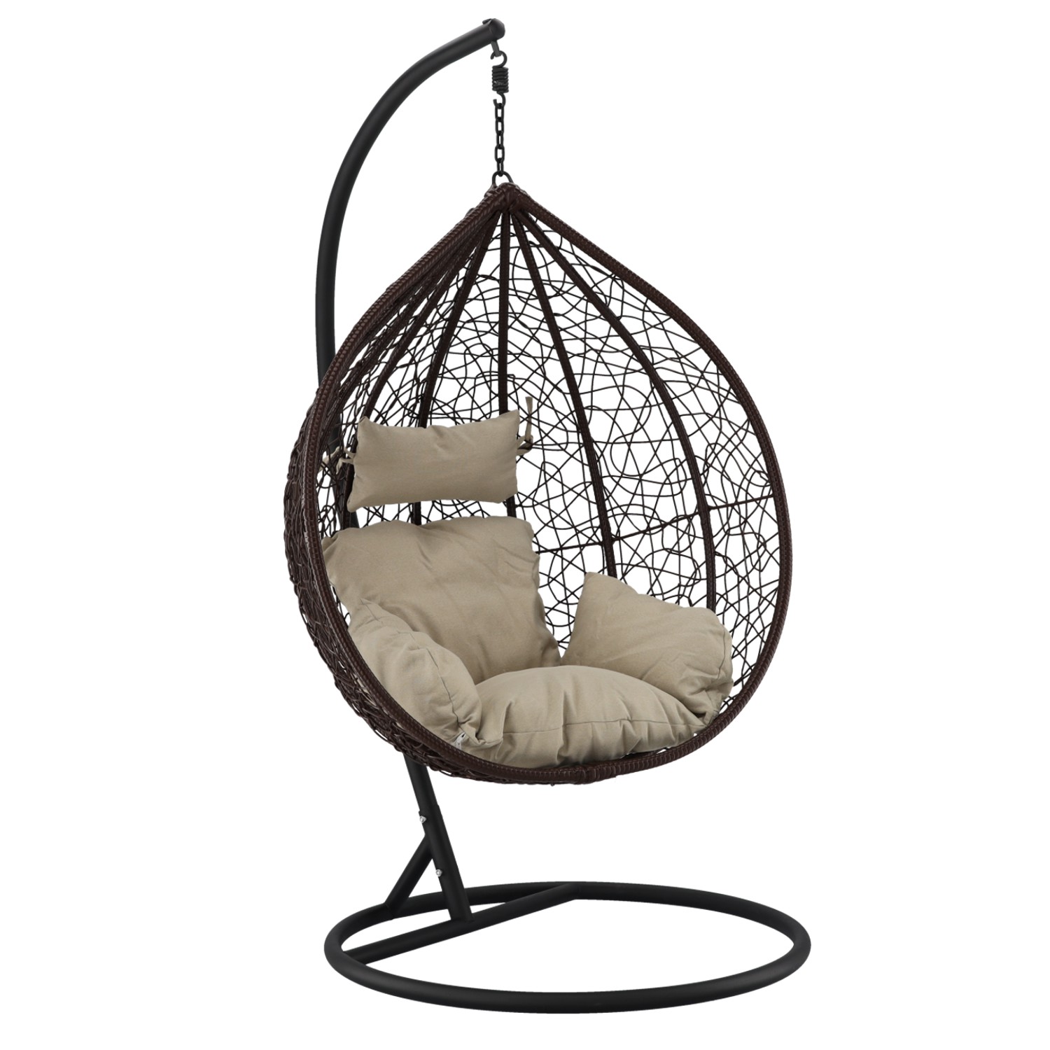 ПОДВЕСНОЕ КРЕСЛО КОРИЧНЕВОГО ЦВЕТА, ПОДУШКА — БЕЖЕВАЯ, РАМА — КОРИЧНЕВАЯ 🌰