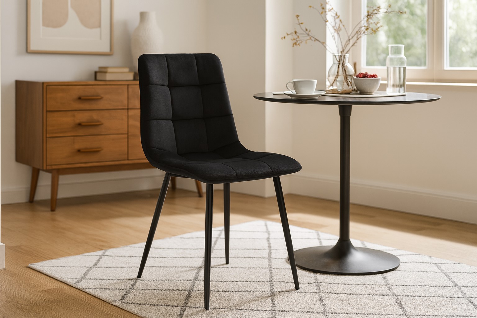 Вы ищете мебель, которая сочетает в себе стиль, комфорт и функциональность? Это современное велюровое кресло в элегантном черном цвете удовлетворит ваши ожидания. 🖤 Оно отличается стеганой спинкой, мягкой велюровой обивкой и прочной конструкцией, благодаря чему отлично подойдет для столовой, гостиной или офиса.