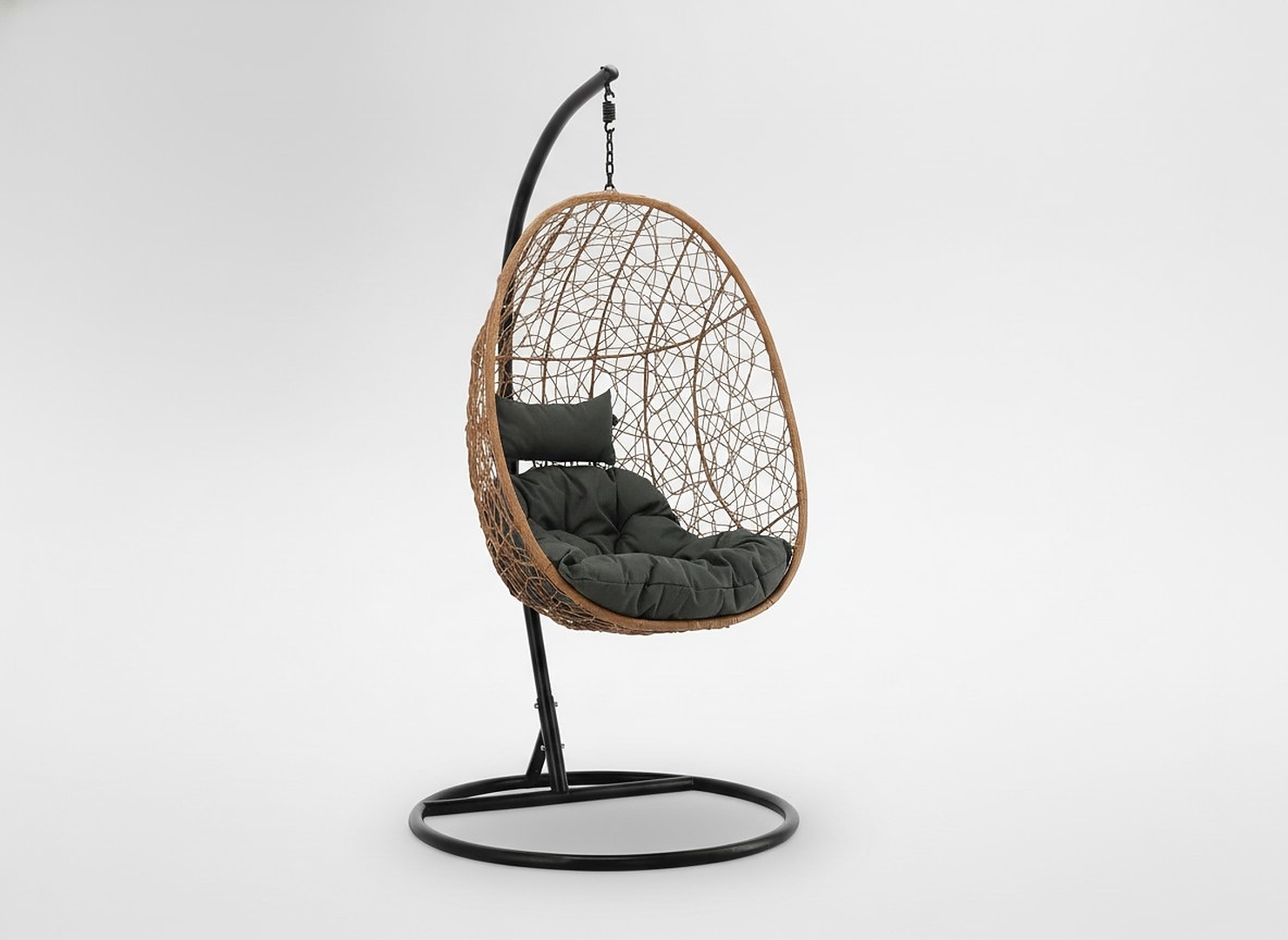 ПОДВЕСНОЕ КРЕСЛО НАТУРАЛЬНОГО ЦВЕТА, ПОДУШКА - ТЕМНО-СЕРАЯ, РАМА - ЧЕРНАЯ