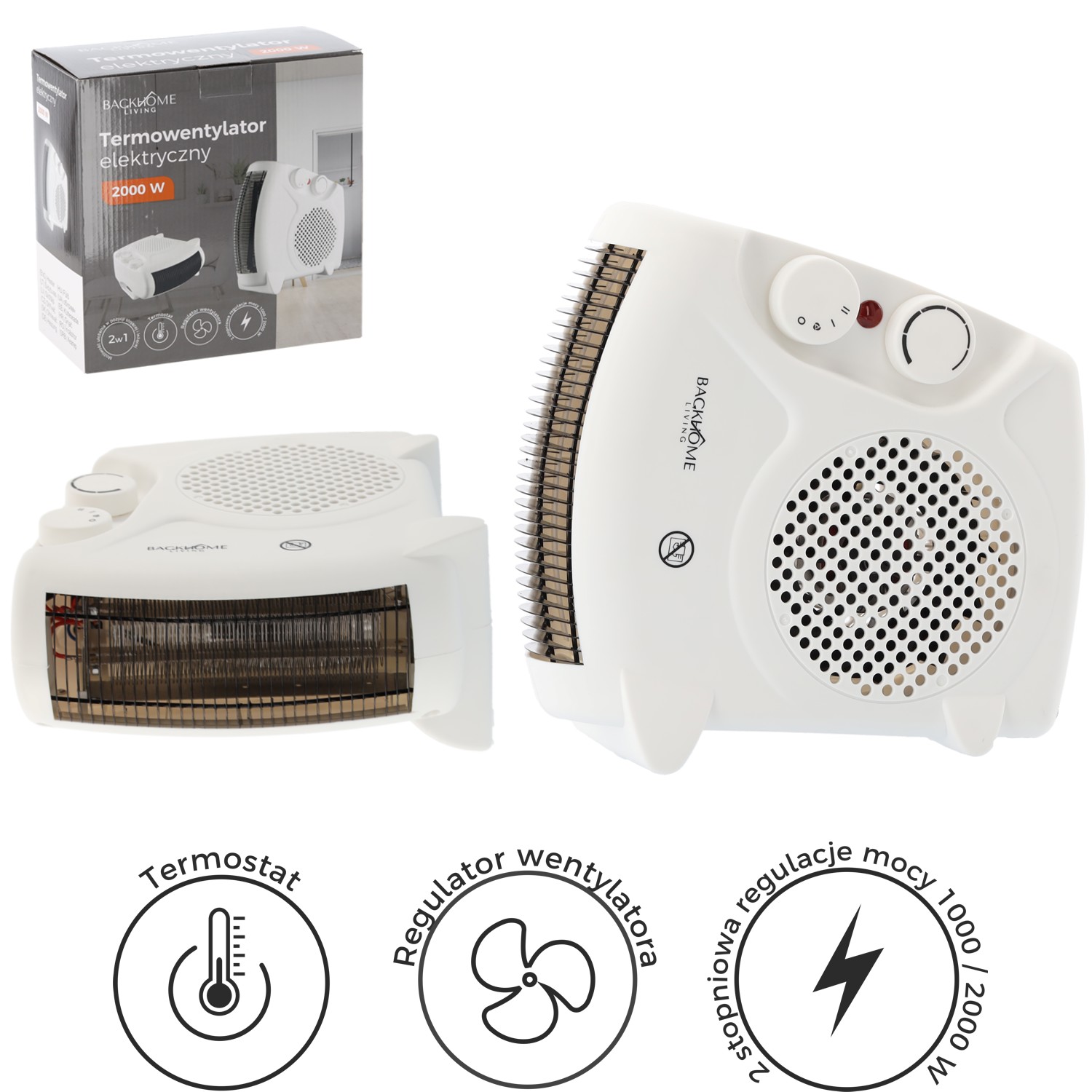 Электрический термовентилятор с функцией подачи теплого или холодного воздуха. Современный дизайн и безопасность в эксплуатации.