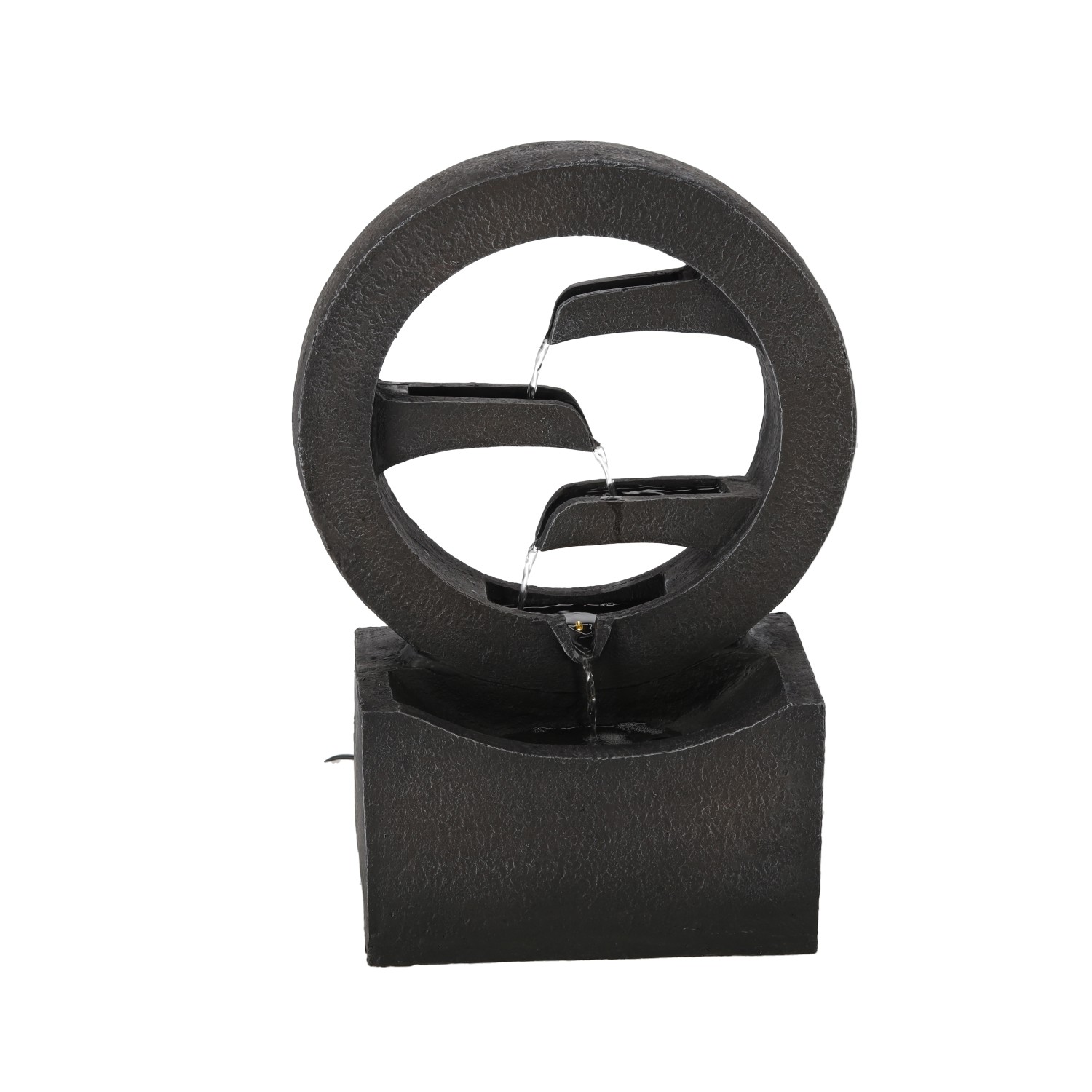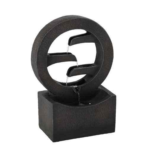 Стильная форма круга в сочетании с мягко стекающей водой создает эффектную композицию, которая привлекает внимание как днем, так и после наступления темноты.