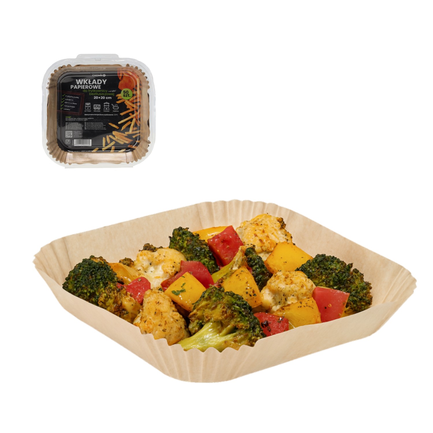 Вкладыши для фритюрницы без масла – 20 x 4,5 см – квадратныеБумажные вкладыши для фритюрницы без масла – идеальное решение для тех, кто ценит чистоту и удобство на кухне. Благодаря специальному покрытию они устойчивы к воздействию воды и жира, а также обеспечивают антипригарную поверхность, что облегчает очистку устройства после использования.Характеристики продукта:Размеры: 20 x 4,5 смЦвет: коричневыйМатериал: бумага - небеленая, со специальным покрытиемПрименение: фритюрница без масла, микроволновая печь, пароварка, сковородаСвойства: водонепроницаемый, жиростойкий, антипригарныйБезопасен для контакта с пищевыми продуктами – сертификаты FDA, LFGB, FSCМаксимальная температура использования: 220 °CПримечания:Не использовать без помещенной пищи. Не подвергать воздействию открытого огня.