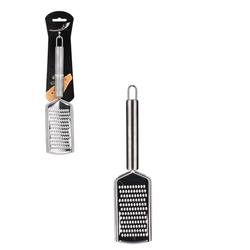 Терка из высококачественной нержавеющей стали. Имеет удобную ручку и незаменима на любой кухне при приготовлении пищи и выпечке. С легкостью натирает сыр, овощи, фрукты и другие продукты на мелкие стружки.