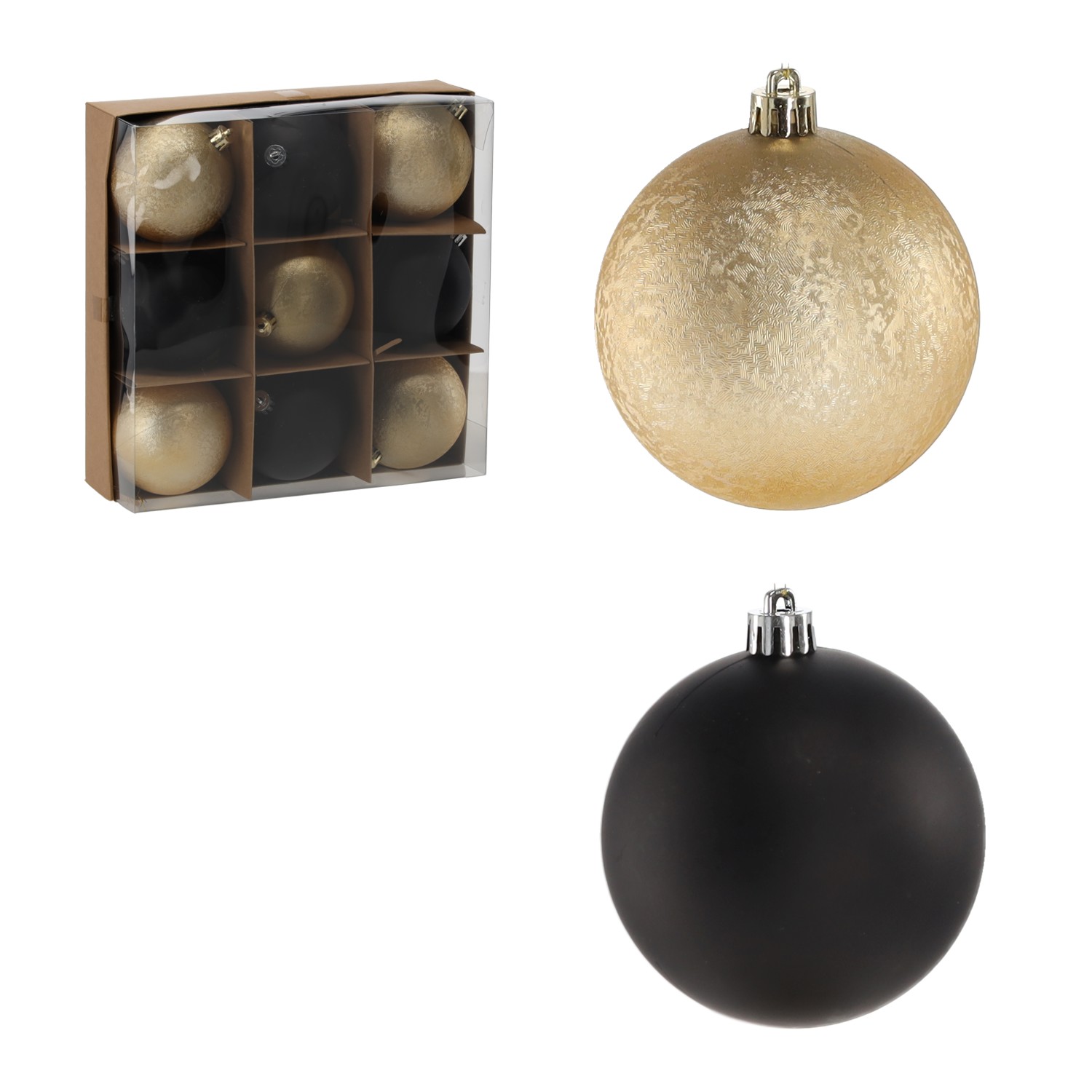 НАБОР ИЗ 9 ЕЛОЧНЫХ ШАРОВКоллекция «Традиция» представляет собой шары и украшения в классическом стиле. Доминирующие цвета: черный и золотой. Среди стандартных оттенков также присутствуют акценты белого и серебряного цветов. Украшения из коллекции «Традиция» являются универсальным декором, который подходит к любому стилю.Украшения идеально вписываются в актуальные тенденции, прекрасно смотрятся на елках любого типа, в любой цветовой комбинации. Шары небьющиеся, благодаря чему не представляют опасности в доме, где есть дети.УКРАШЕНИЕ ДЛЯ ЕЛКИКрасочное украшение для елки придаст блеск вашей елке! Создайте незабываемую композицию благодаря узорчатым шарам. Позвольте духу праздника посетить вашу семью.Традиционный дизайн украсит елку и, несомненно, вызовет воспоминания о многих совместно проведенных праздниках.