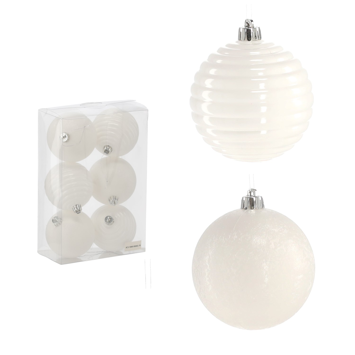 Набор из 6 шаров диаметром 8 см – белые, элегантные украшения для елки