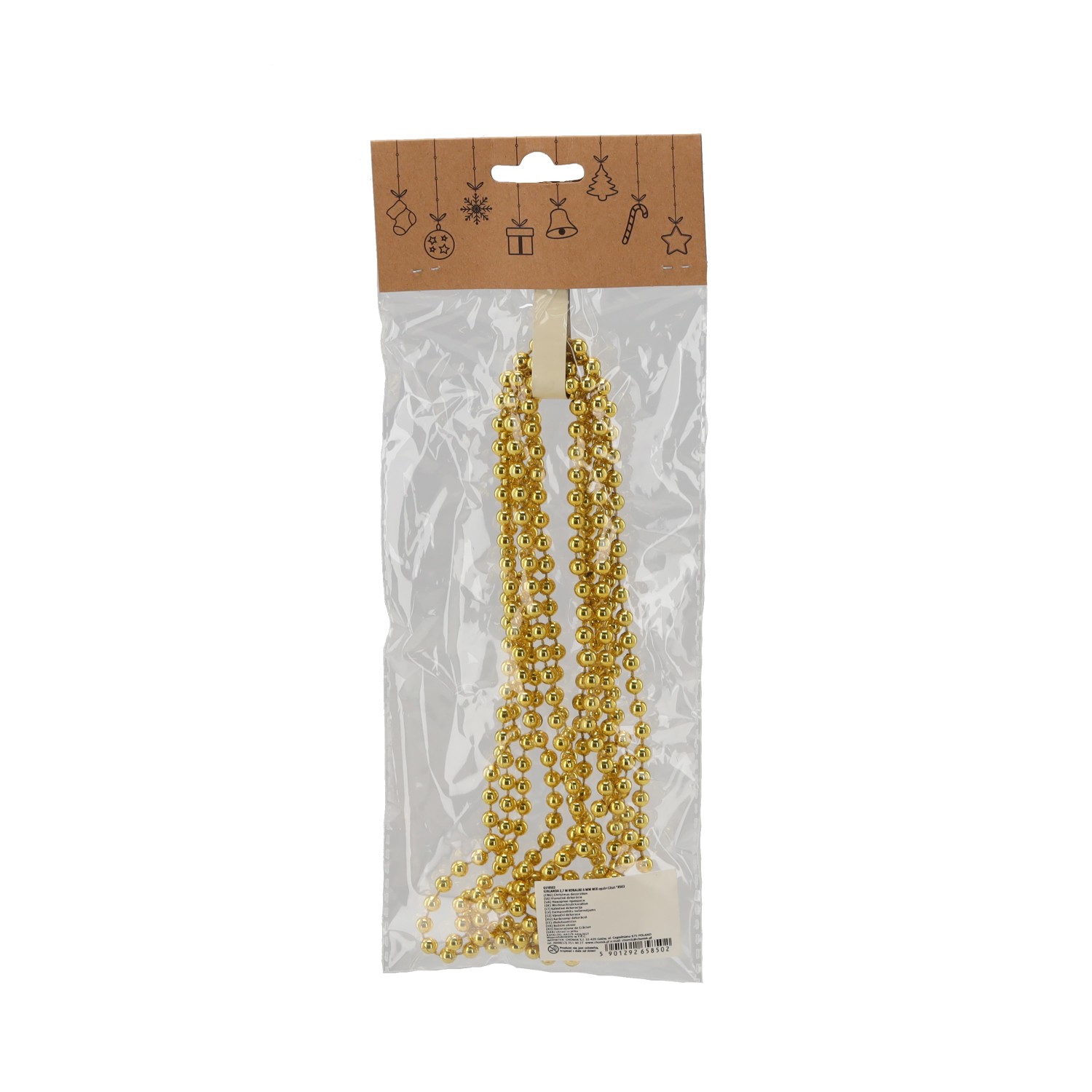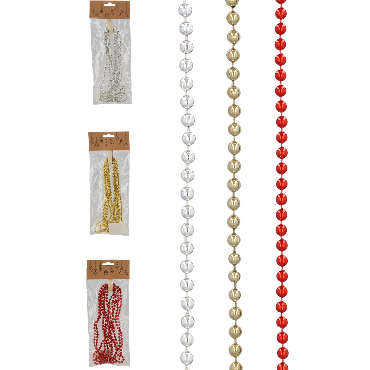Рождественская гирлянда — бусины длиной 2,7 м и толщиной 6 мм. Изготовлена из пластика. Гирлянда из бусин идеально подходит для украшения рождественской елки, а также многих других предметов или помещений. Прекрасное украшение для окон или дверей.